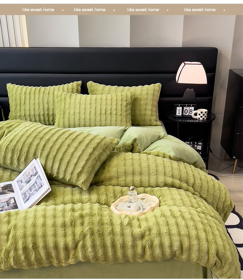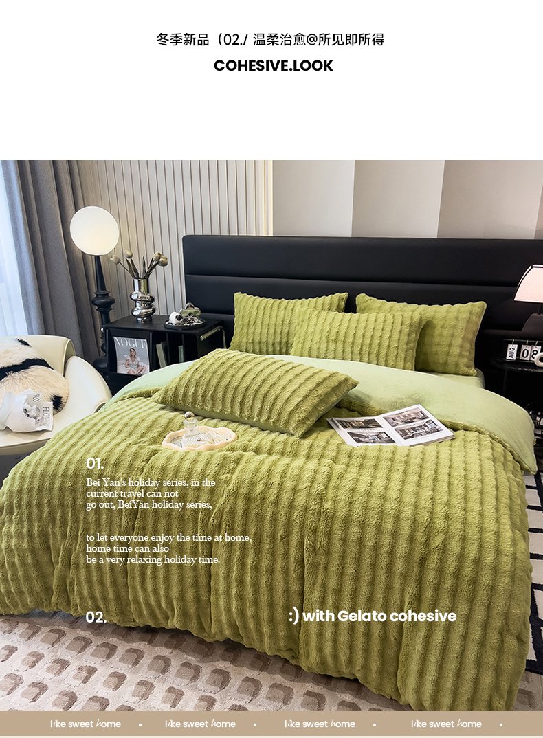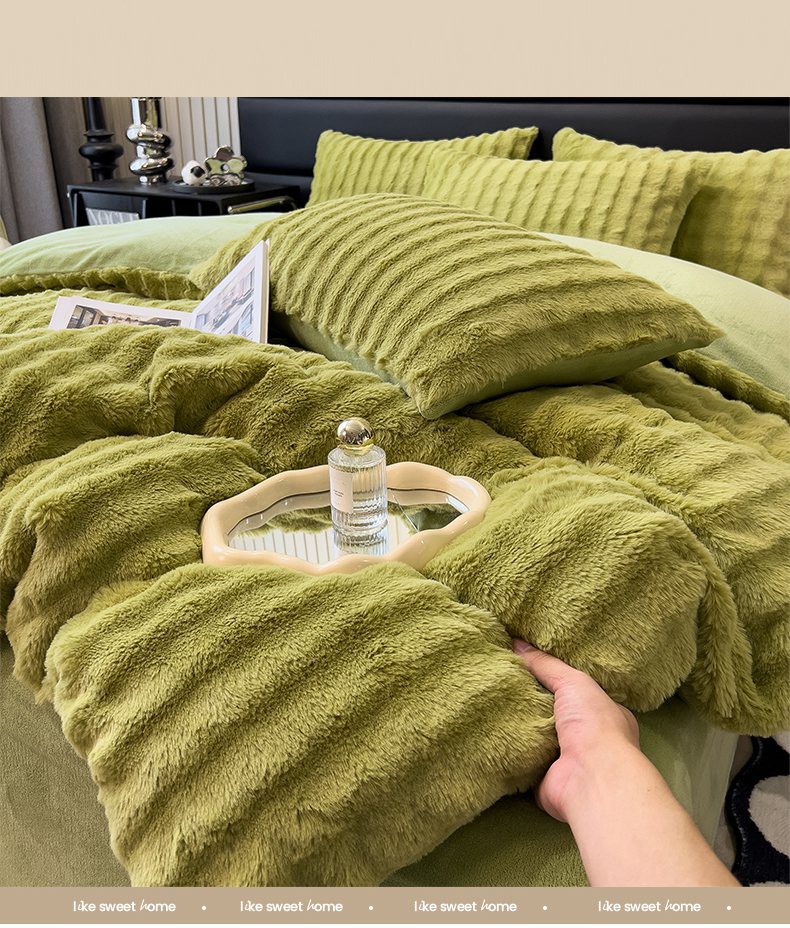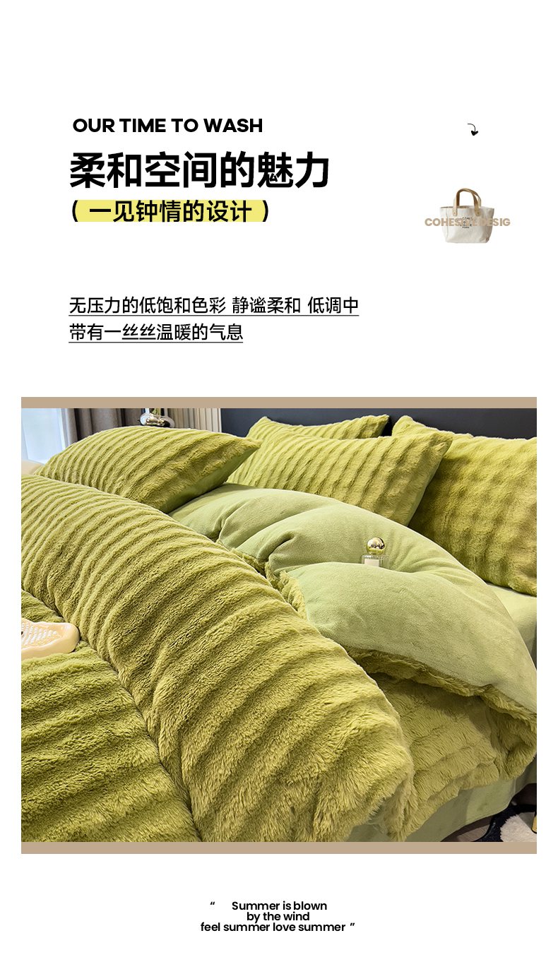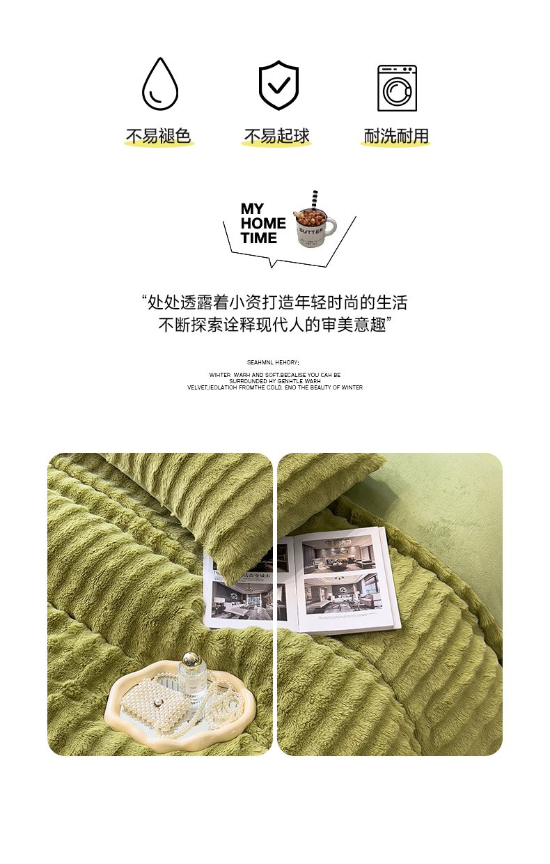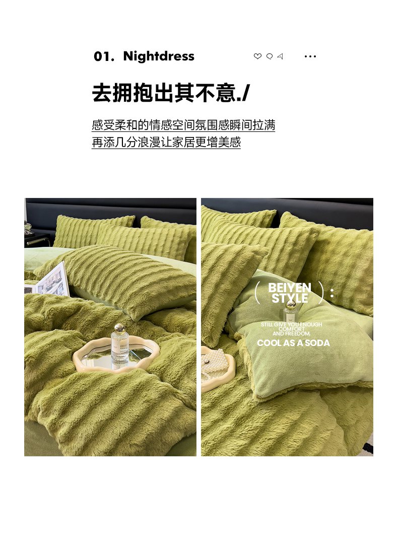 (总)摩妮卡 2025新款加厚大泡泡兔毛牛奶绒四件套,暖白+暗苔绿,暗苔绿,伽罗咖,槿紫,暖白+伽罗咖,韶粉