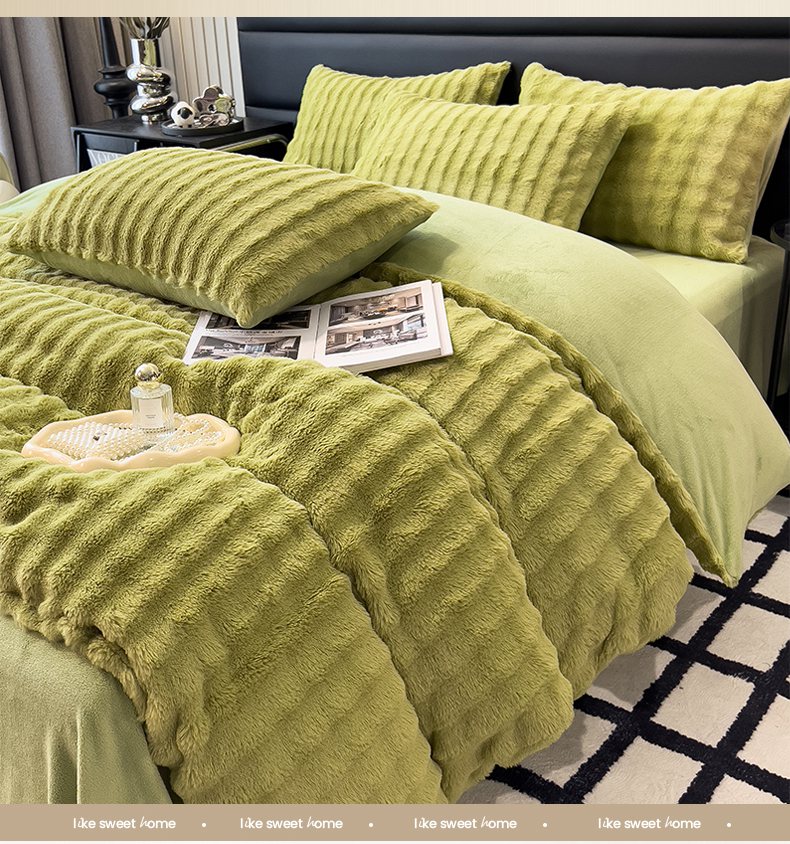 摩妮卡 2025新款加厚大泡泡兔毛牛奶绒四件套 暗苔绿