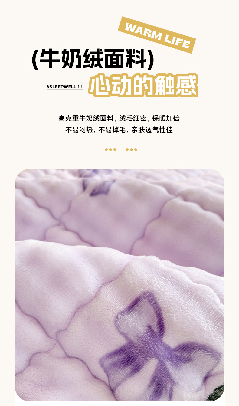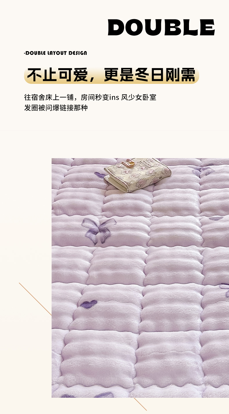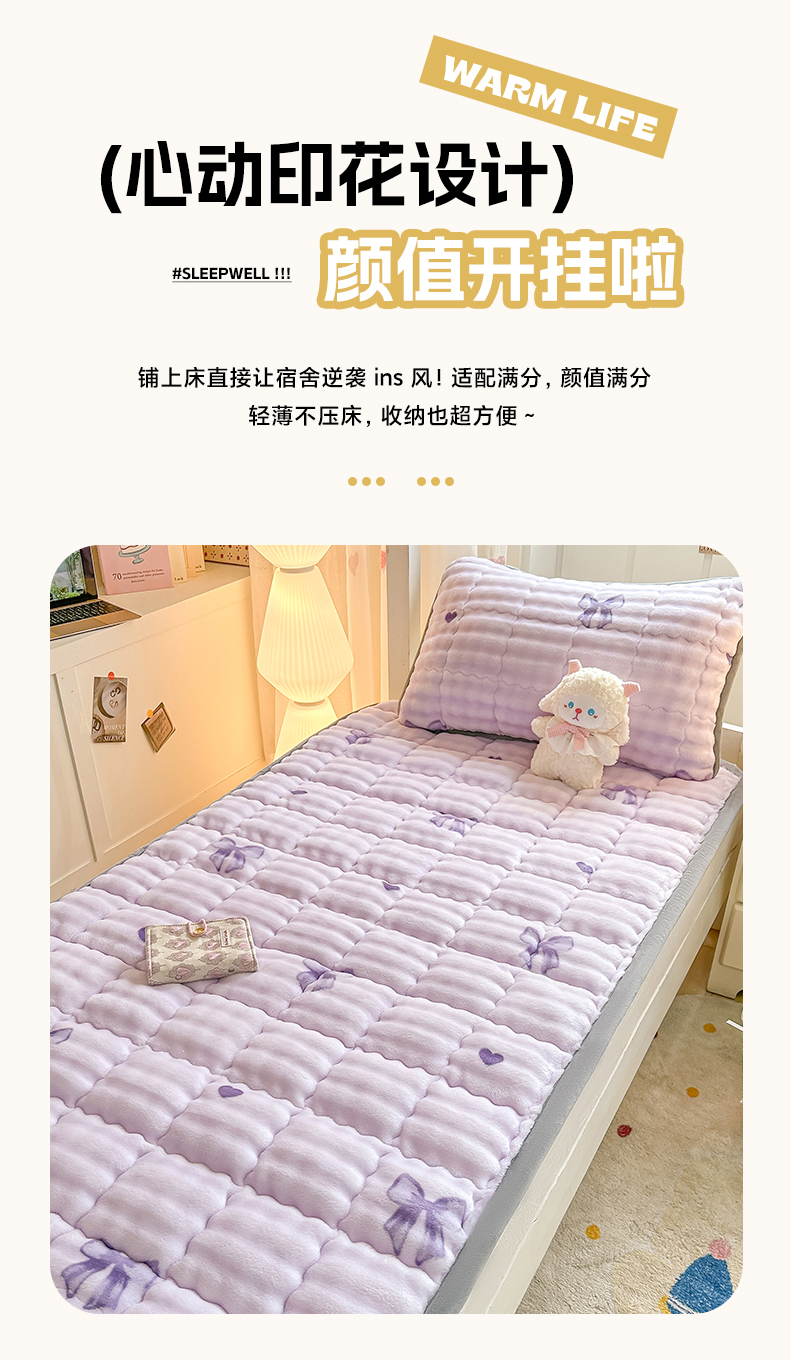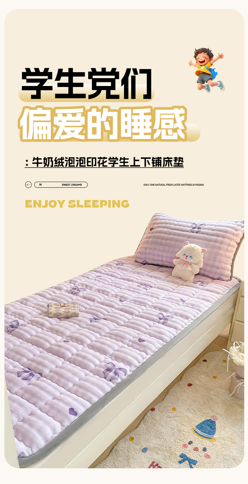 当前位置: 91家纺网 > 商品网购 > 床垫/床褥 > 普通床垫 > 眠势力 2025新款牛奶绒泡泡床褥加绒仿兔毛绒床褥子秋冬保暖珊瑚绒夹棉学生上下铺床护垫 罗曼情节