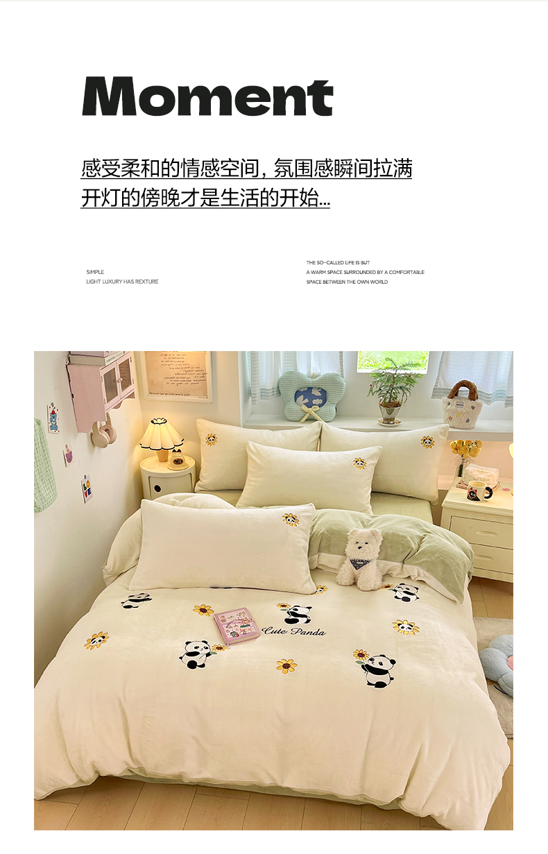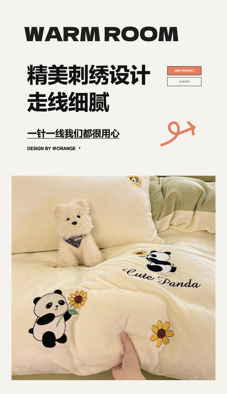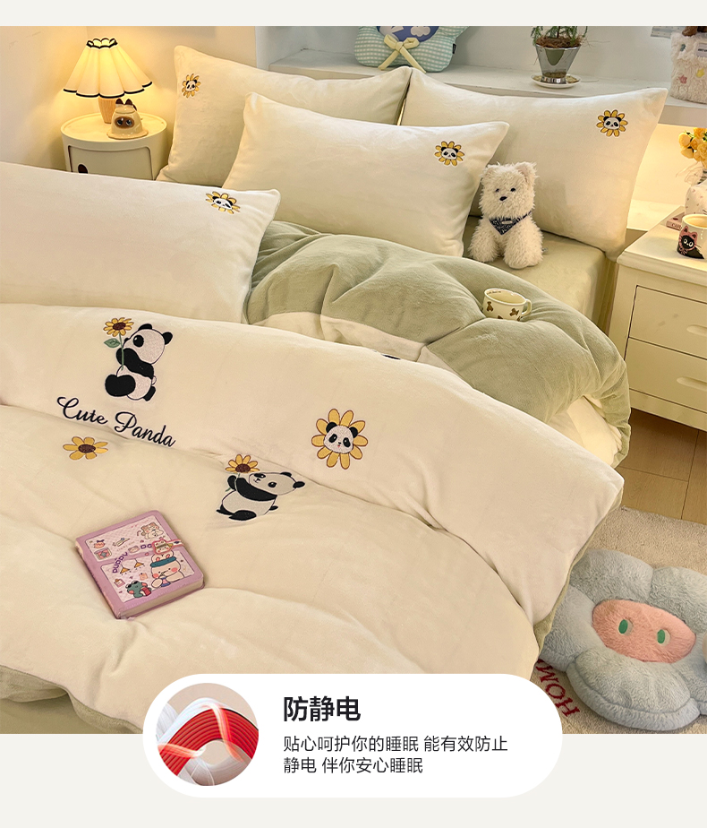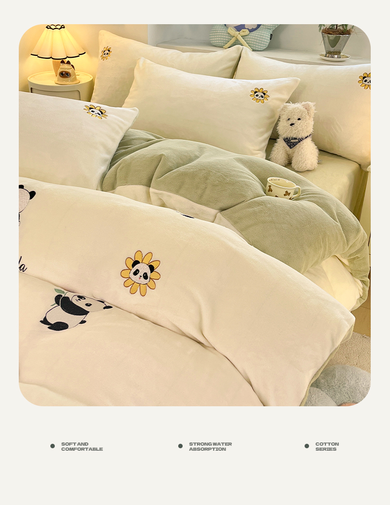 商品名称:利欧 2025新款满绣卡通牛奶绒刺绣四件套 向日葵熊-米白