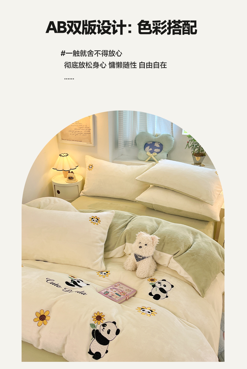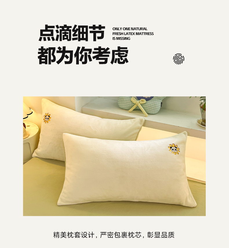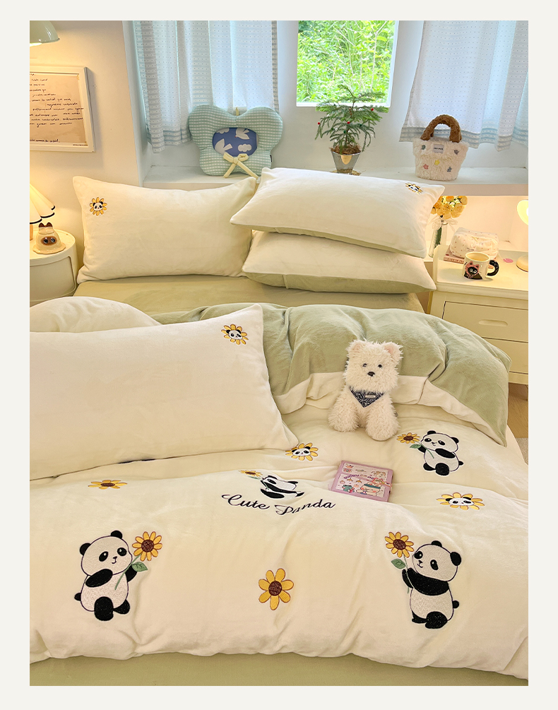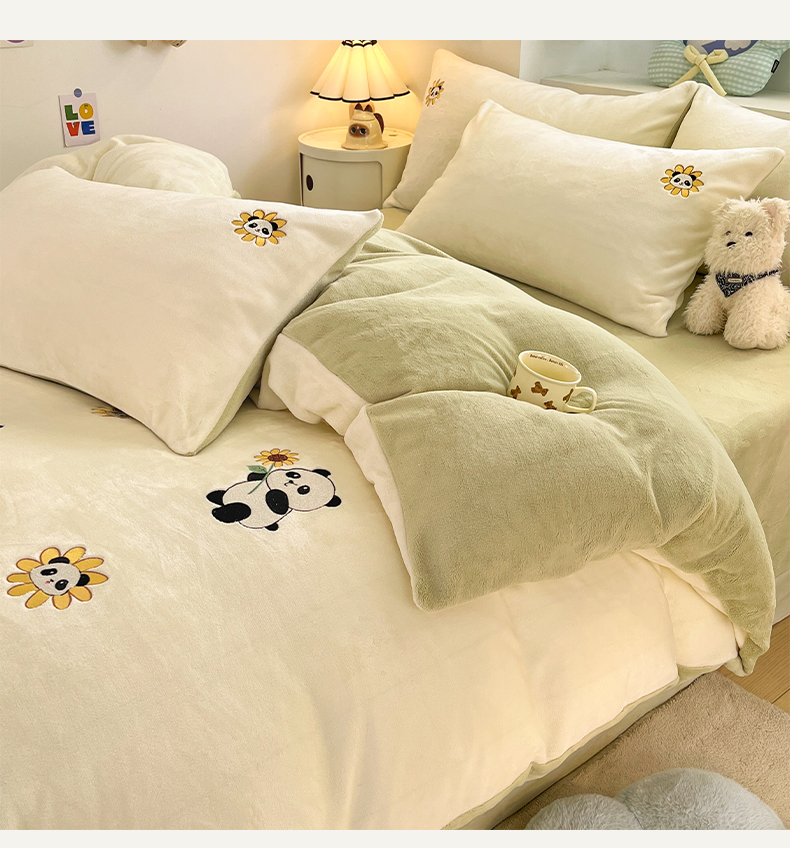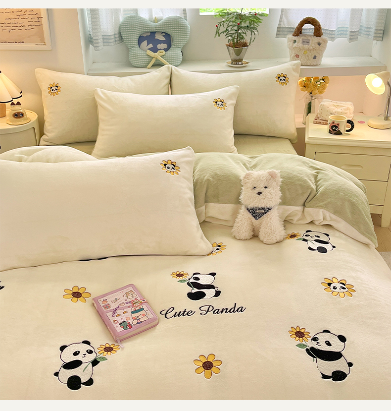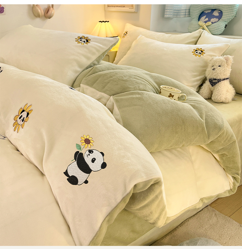 利欧 2025新款满绣卡通牛奶绒刺绣四件套 向日葵熊-米白