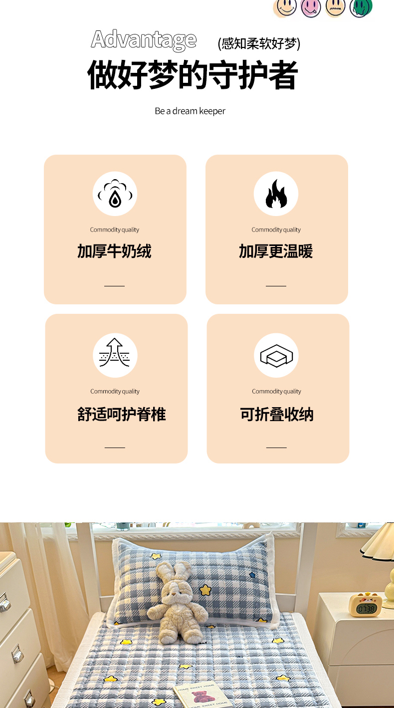 当前位置: 91家纺网 > 商品网购 > 床垫/床褥 > 普通床垫 > 川悦生活 2025新款A类印花牛奶绒床垫加厚绒保暖床床褥 床垫简空星号