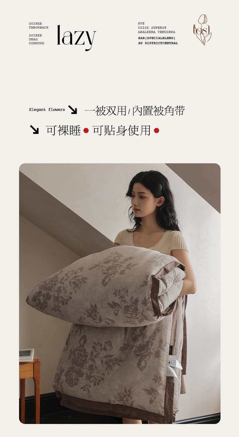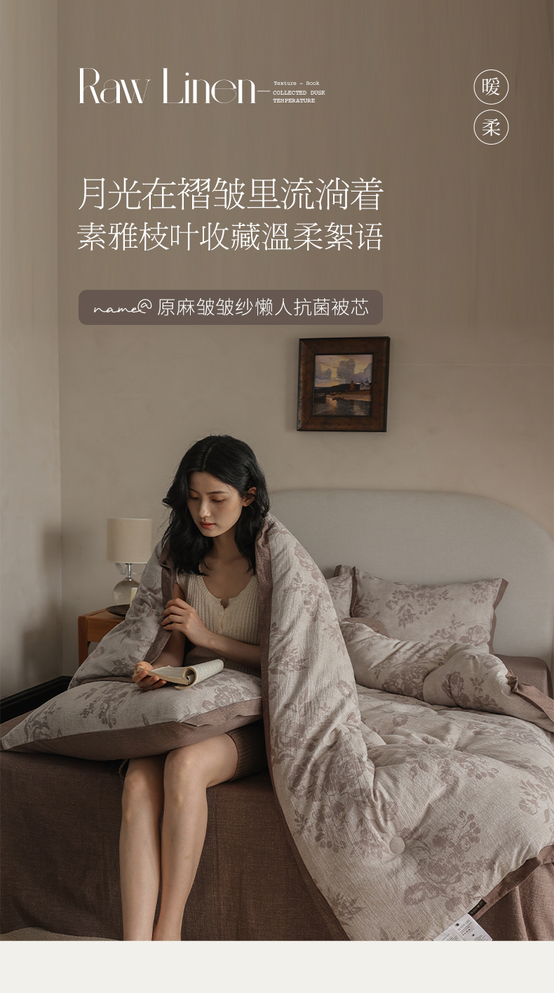 商品名称:玛德琳 2025新款原麻皱皱纱懒人抗菌冬被被子被芯 洛娜