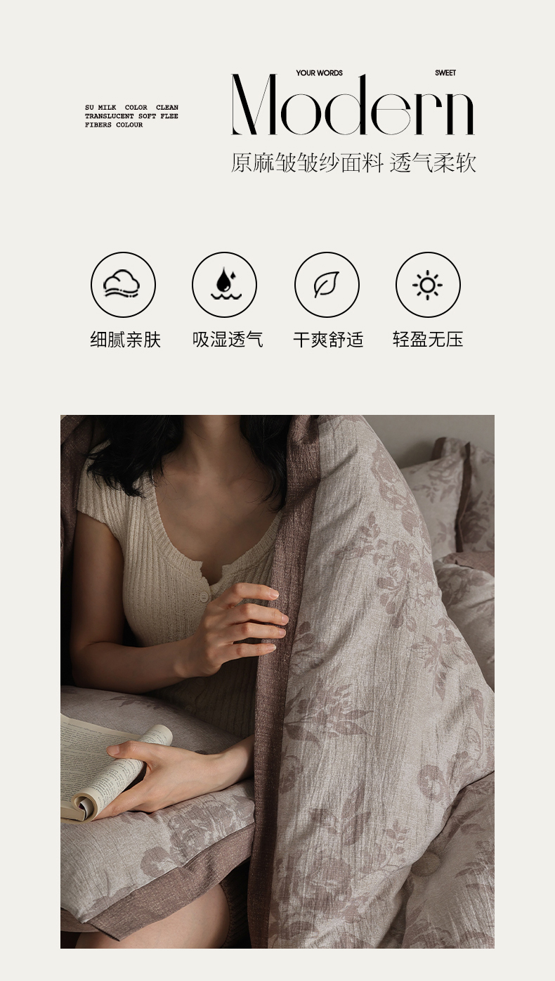 (总)玛德琳 2025新款原麻皱皱纱懒人抗菌冬被被子被芯,露西-紫,洛娜,米洛斯,南法庄园,尤朵拉,羽榭