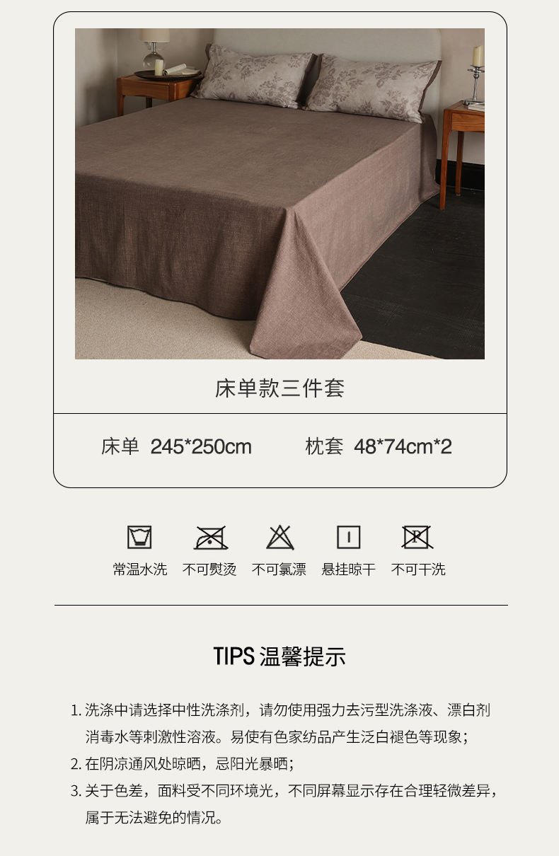 245x250cm单床单+枕套一对