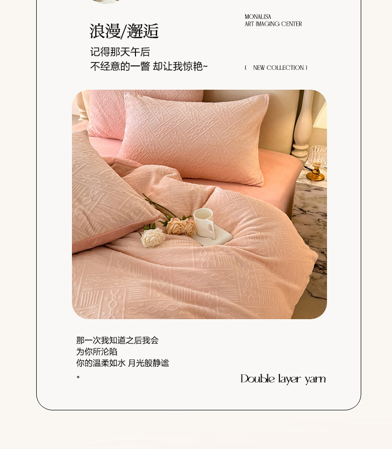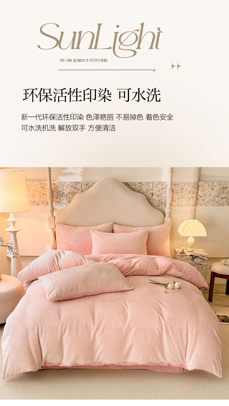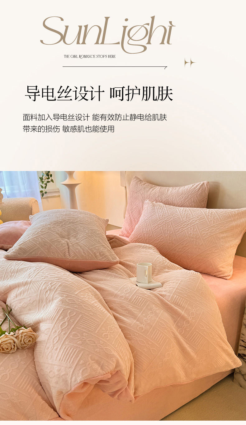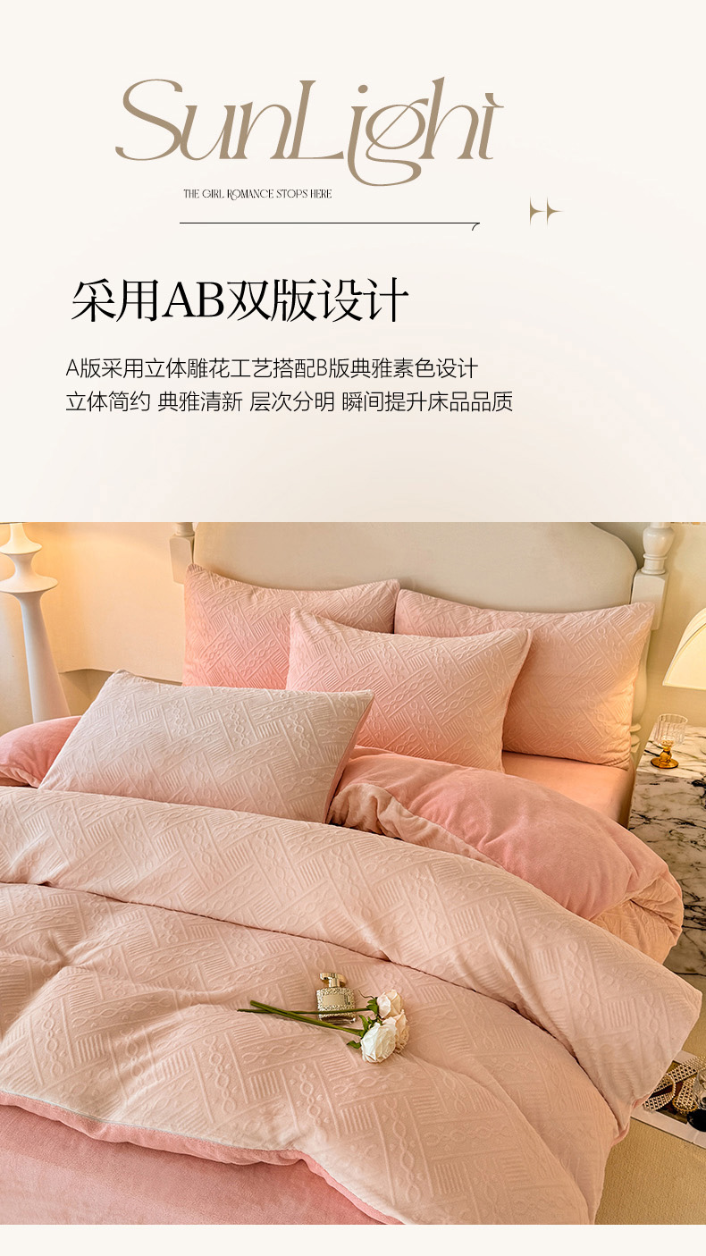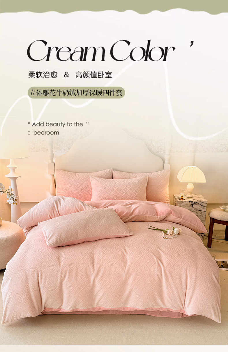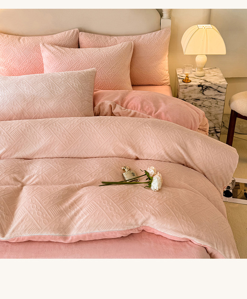 当前位置: 91家纺网 > 商品网购 > 床品套件 > 四件套 > 牛奶绒四件套 > 眠博士 2025新款立体雕花牛奶绒加厚保暖四件套-安吉拉-芙蔓-赛琳 浮雕绒-安吉拉粉