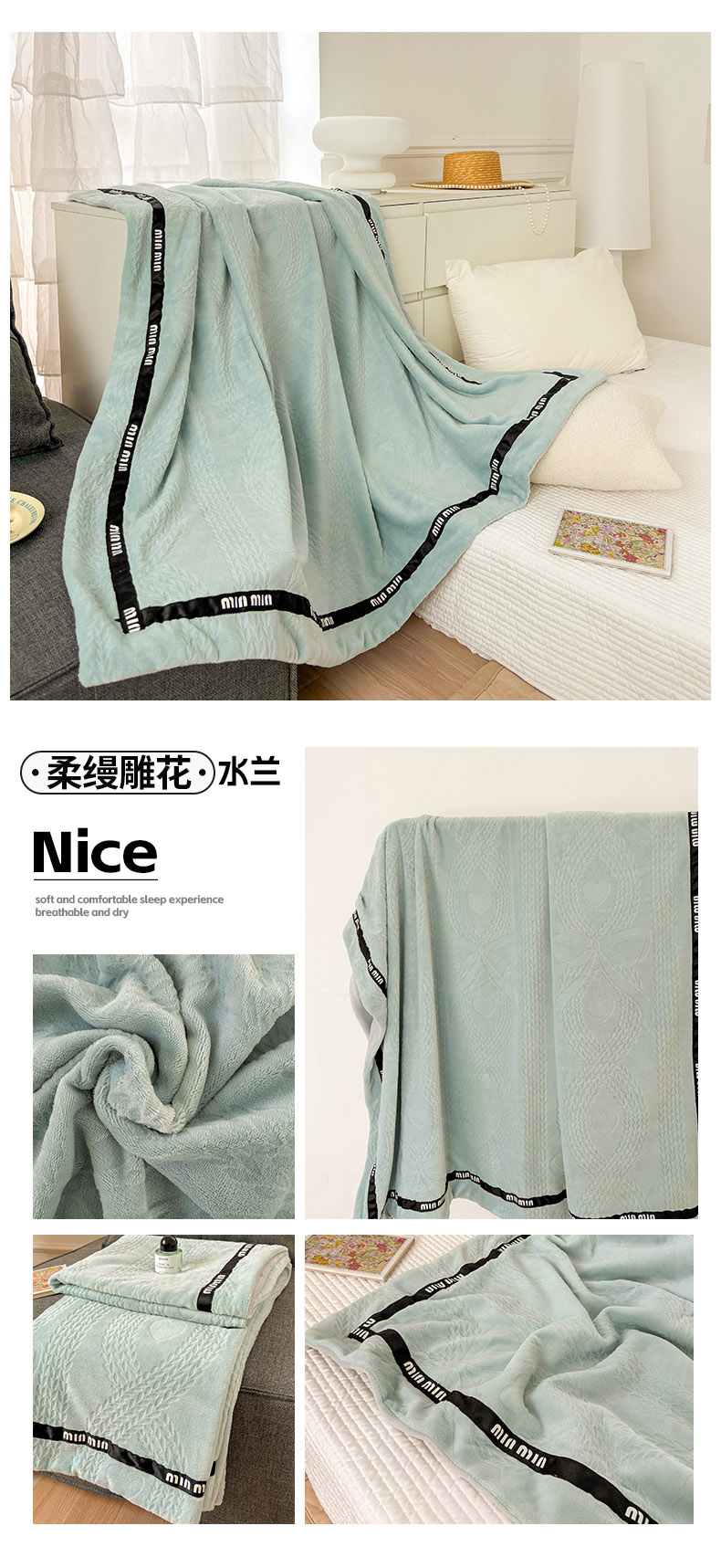 悦织湾家纺 2025新款雕花牛奶绒压线毛毯轻奢时尚高品盖毯办公室午睡沙发休闲毯子跨境专供外贸 柔缦雕花-米黄