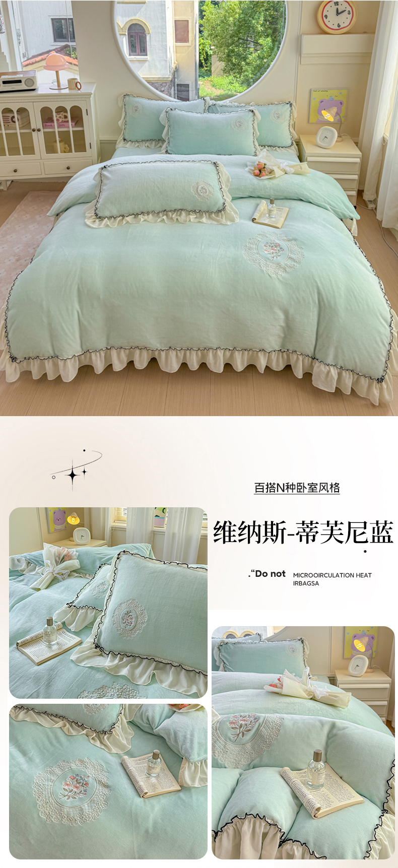 商品名称:橘子家 2025新款婴儿绒床上四件套系列-维纳斯 维纳斯-蒂芙尼蓝