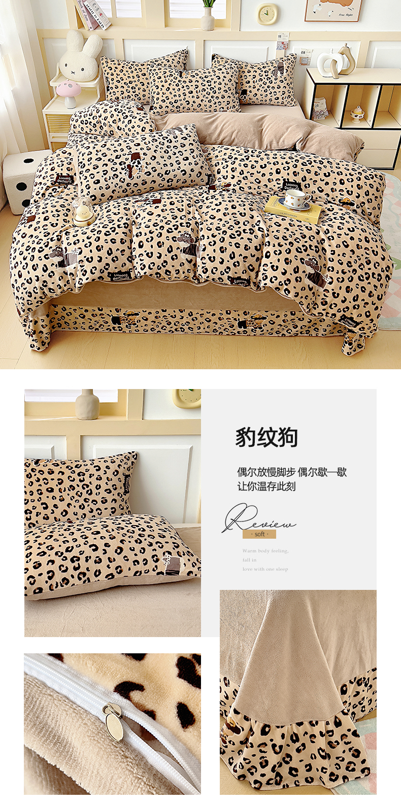 找底底家纺 2025新款牛奶绒四件套(日发50套优惠8元一套) 豹纹狗