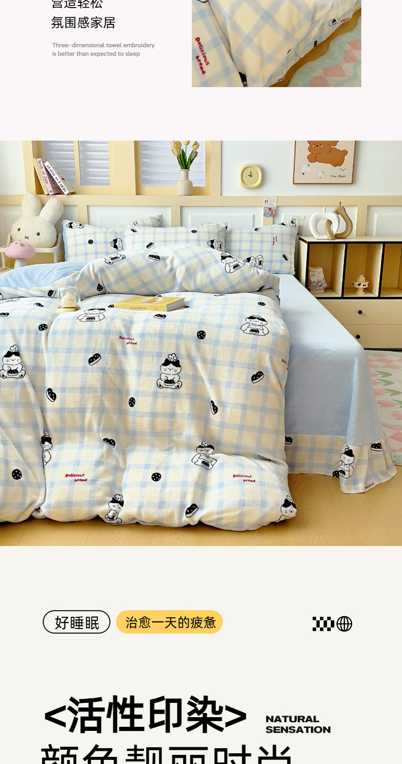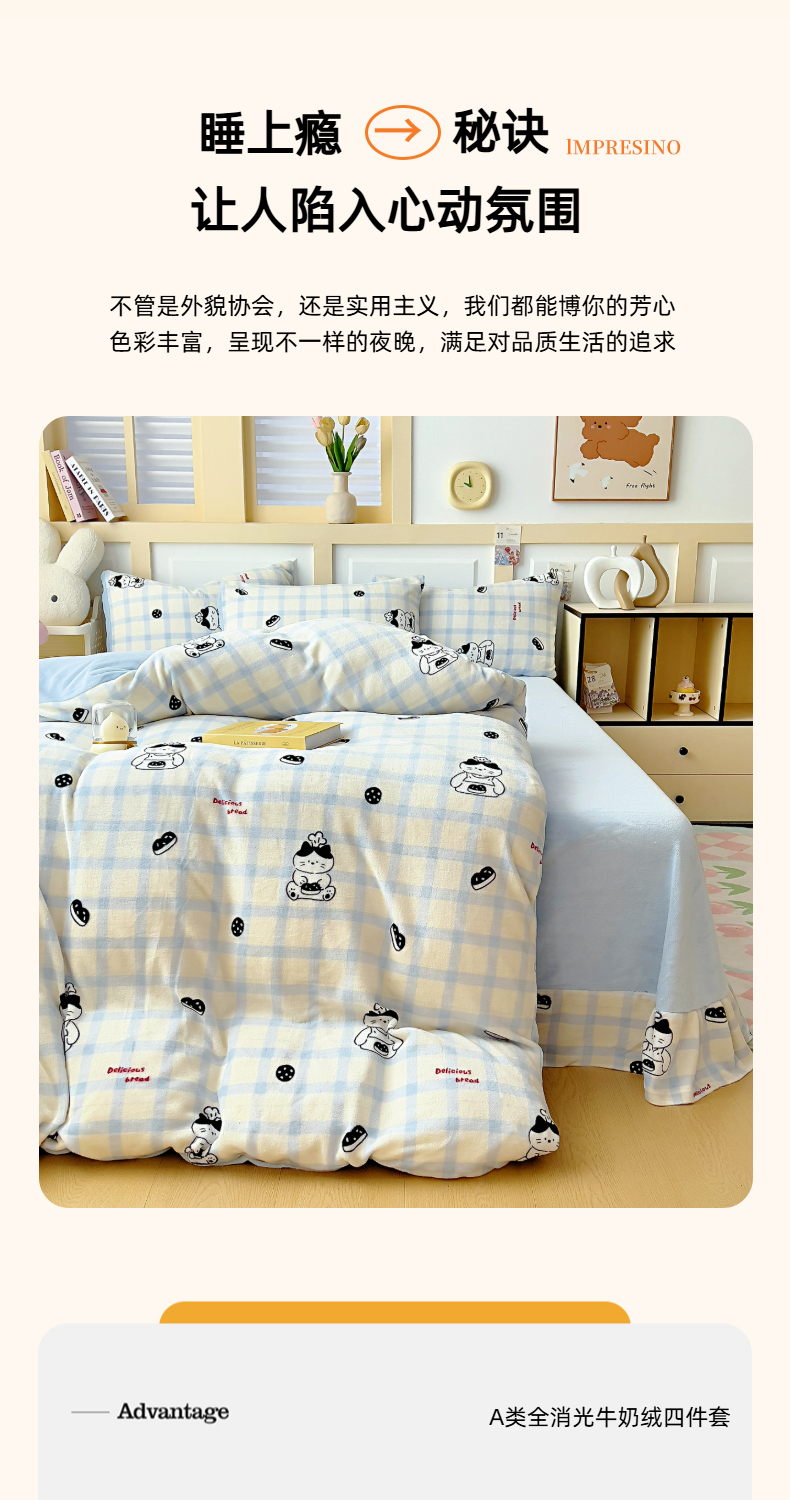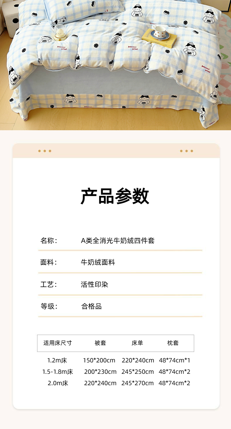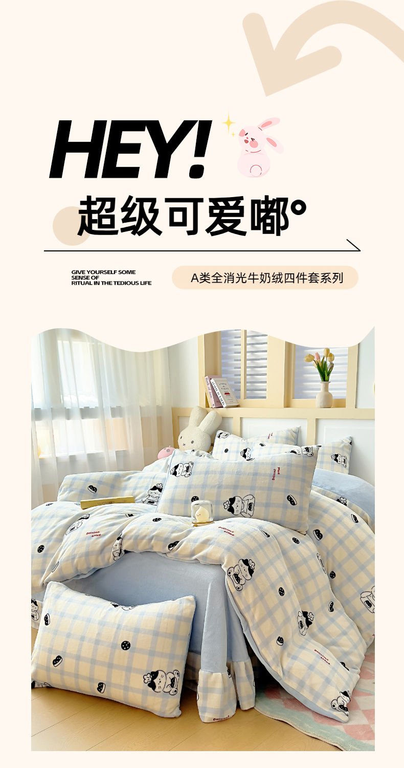 (总)找底底家纺 2025新款牛奶绒四件套(日发50套优惠8元一套),爱心熊,格子熊,奶糖波点熊,美乐蒂,蓝格猫,奶糖小镇,可可奶格,奶杏猫,焦糖布丁熊,花田薰衣草,巧克力布丁,海盐汽车,圣诞派对,奶黄小狗,草莓熊,复古格纹,甜熊波点梦,豹纹狗,小狗巴士,樱桃兔,芋泥兔,小樱桃,几何条纹,梨花落,花妖