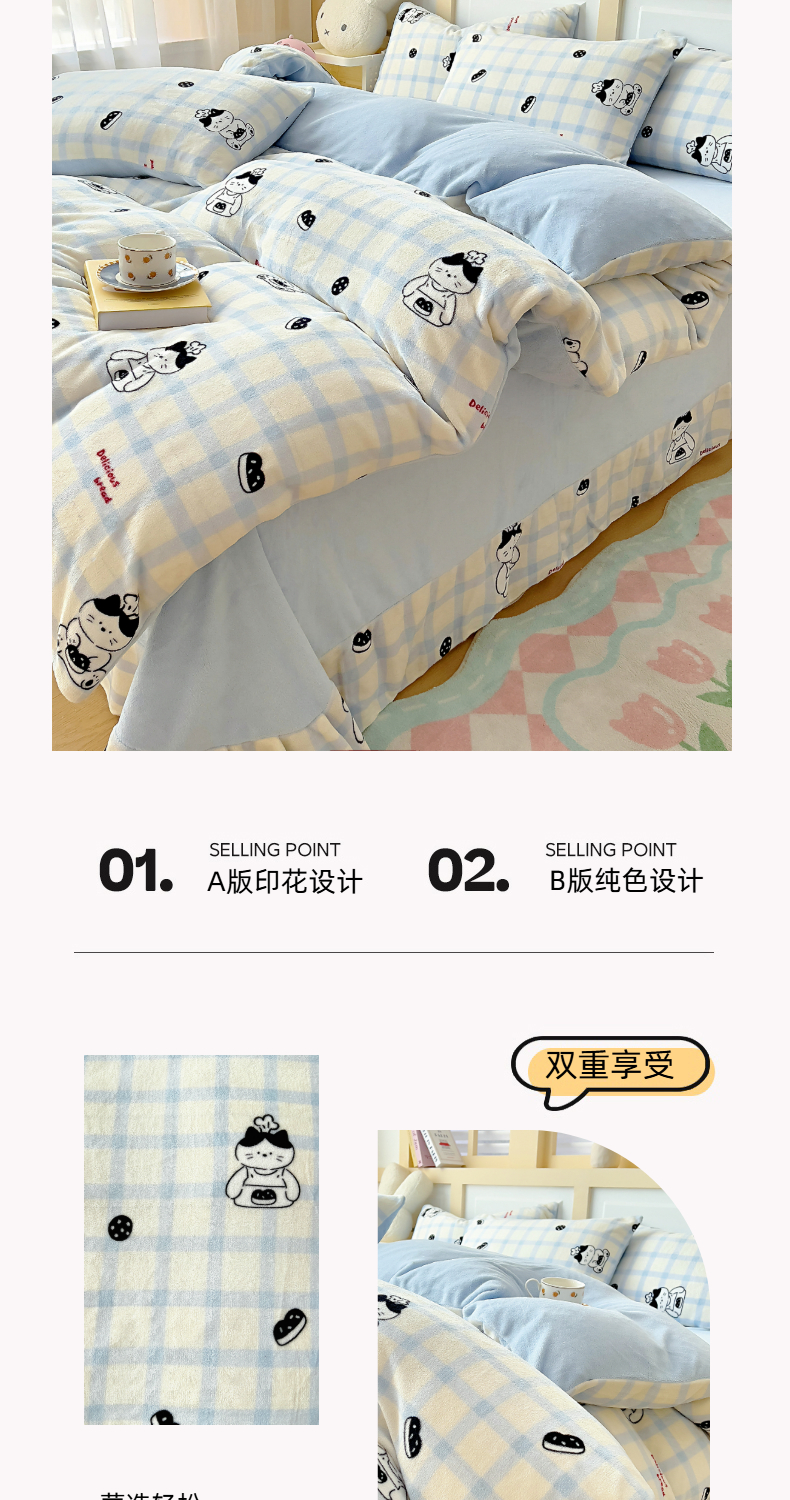 (总)找底底家纺 2025新款加厚床盖款双面绒A类印花款牛奶绒四件套(日销50单客户,在优惠5元),草莓熊,花妖,焦糖布丁熊,梨花落,奶糖小镇,巧克力布丁,圣诞派对,红格苹果猫,小樱桃,紫蔻