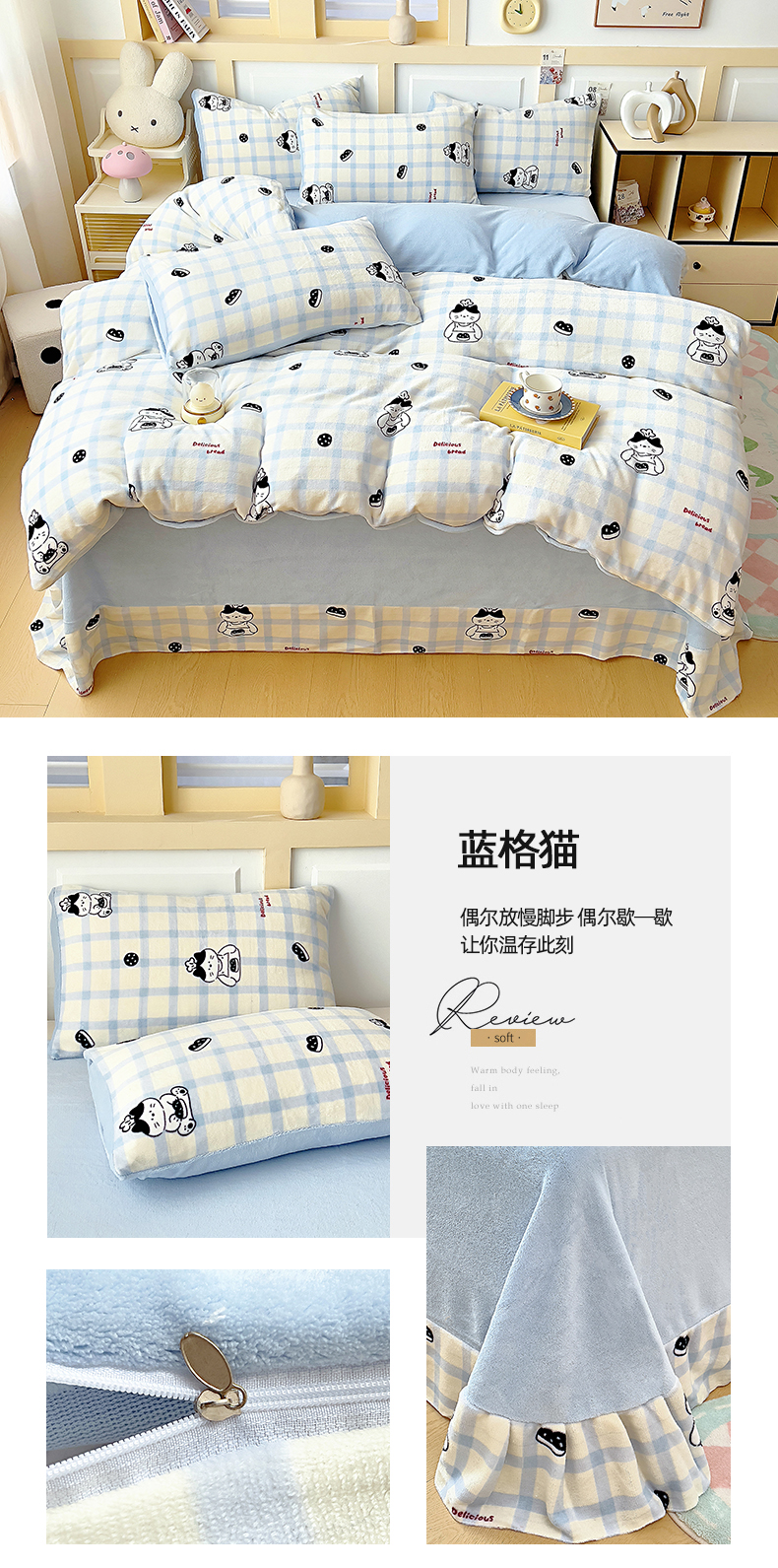 商品名称:找底底家纺 2025新款牛奶绒四件套(日发50套优惠8元一套) 蓝格猫