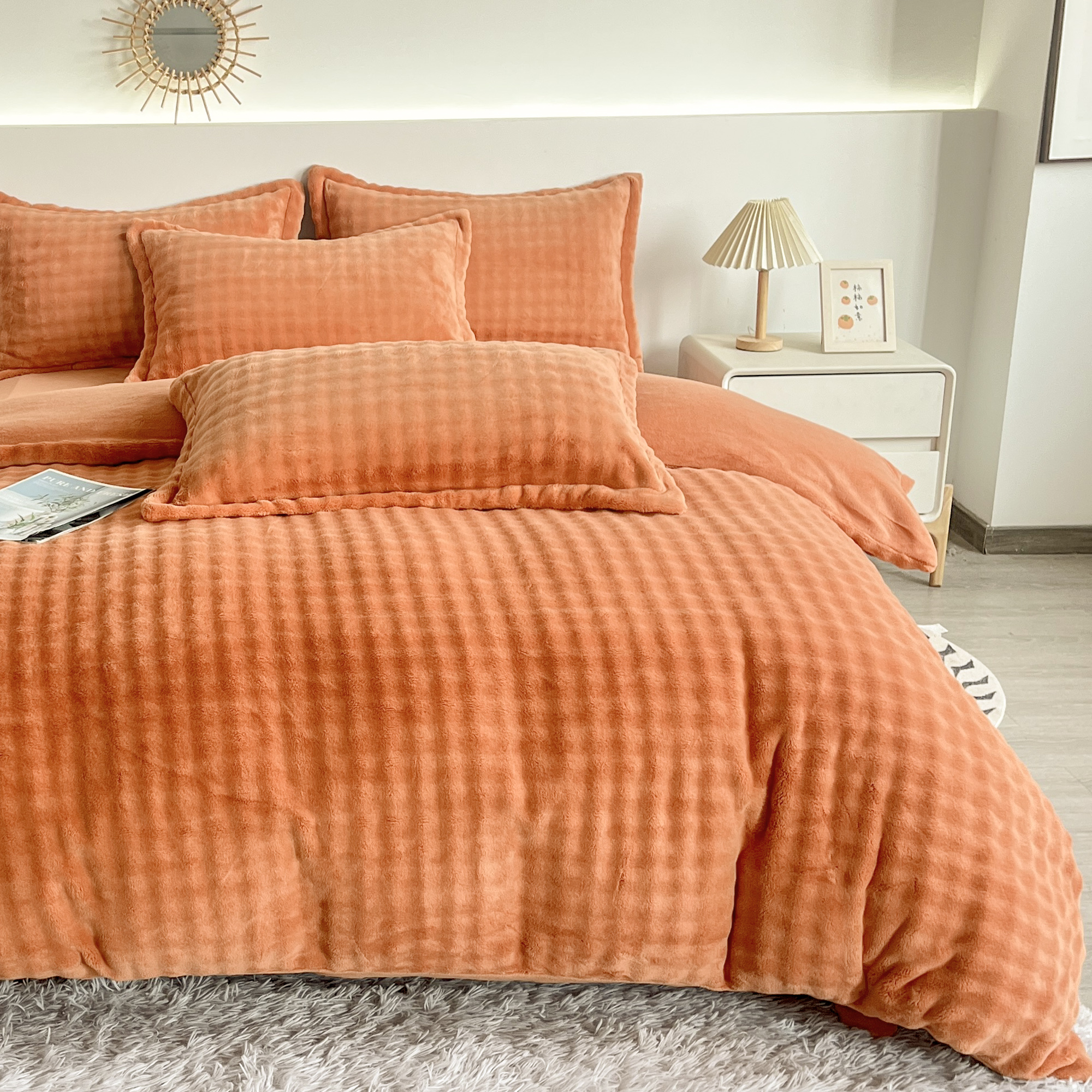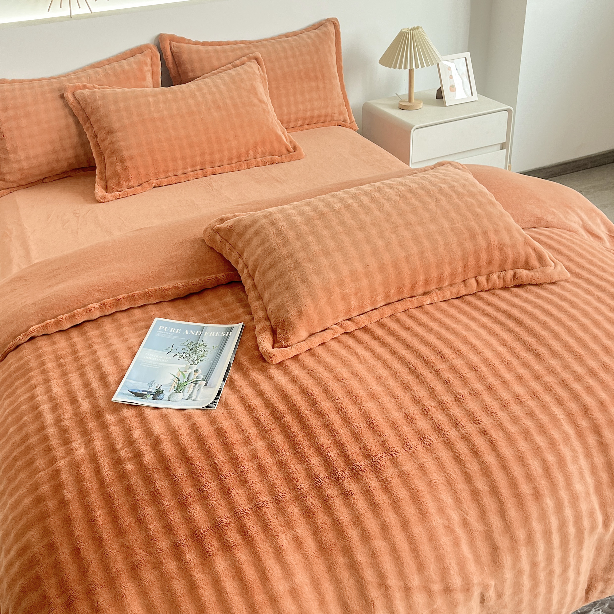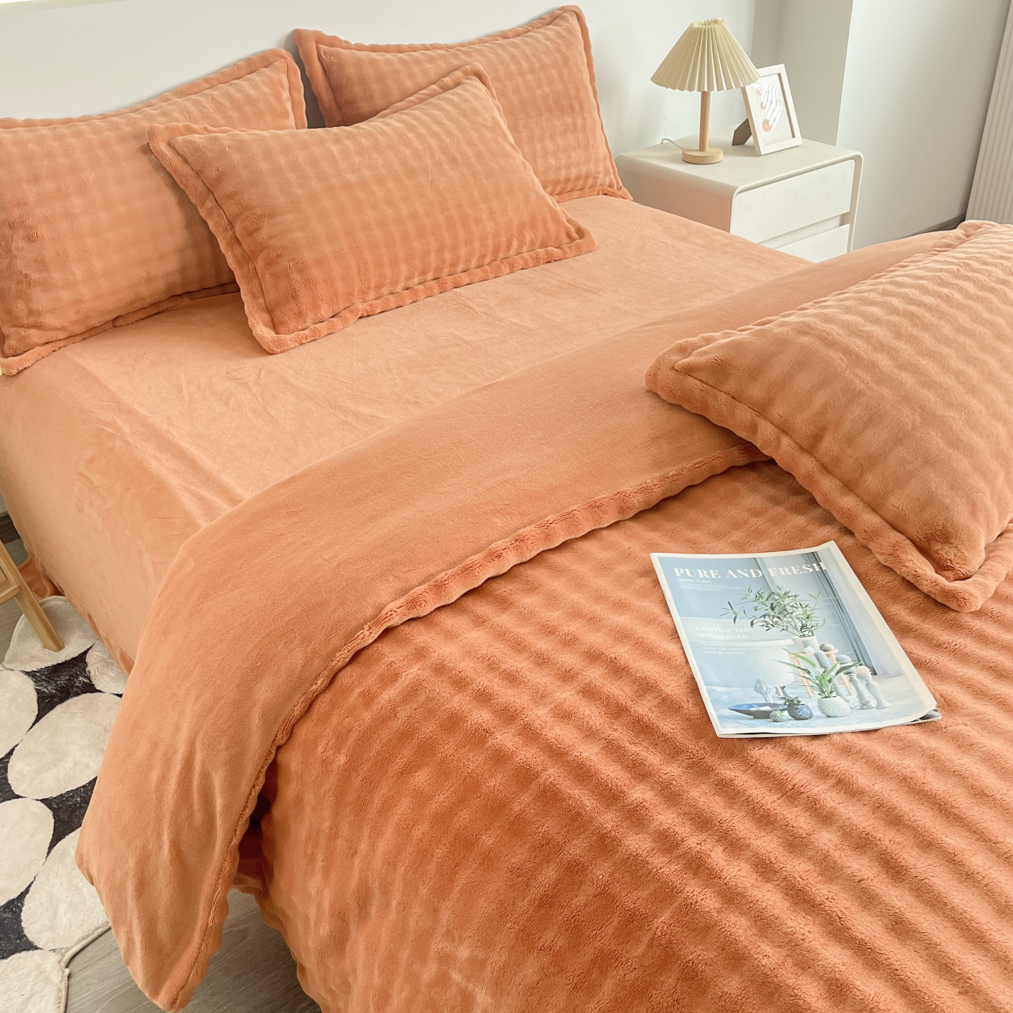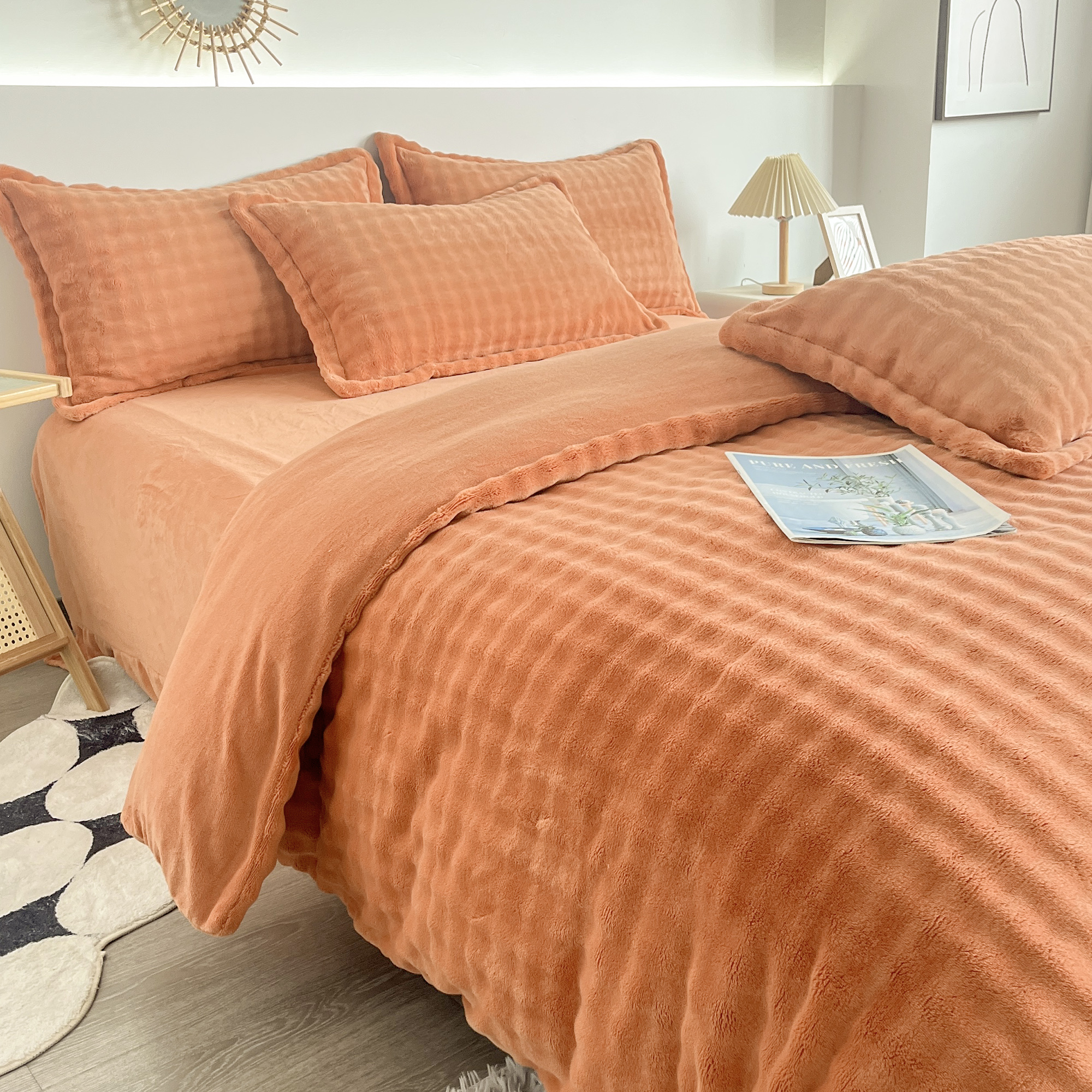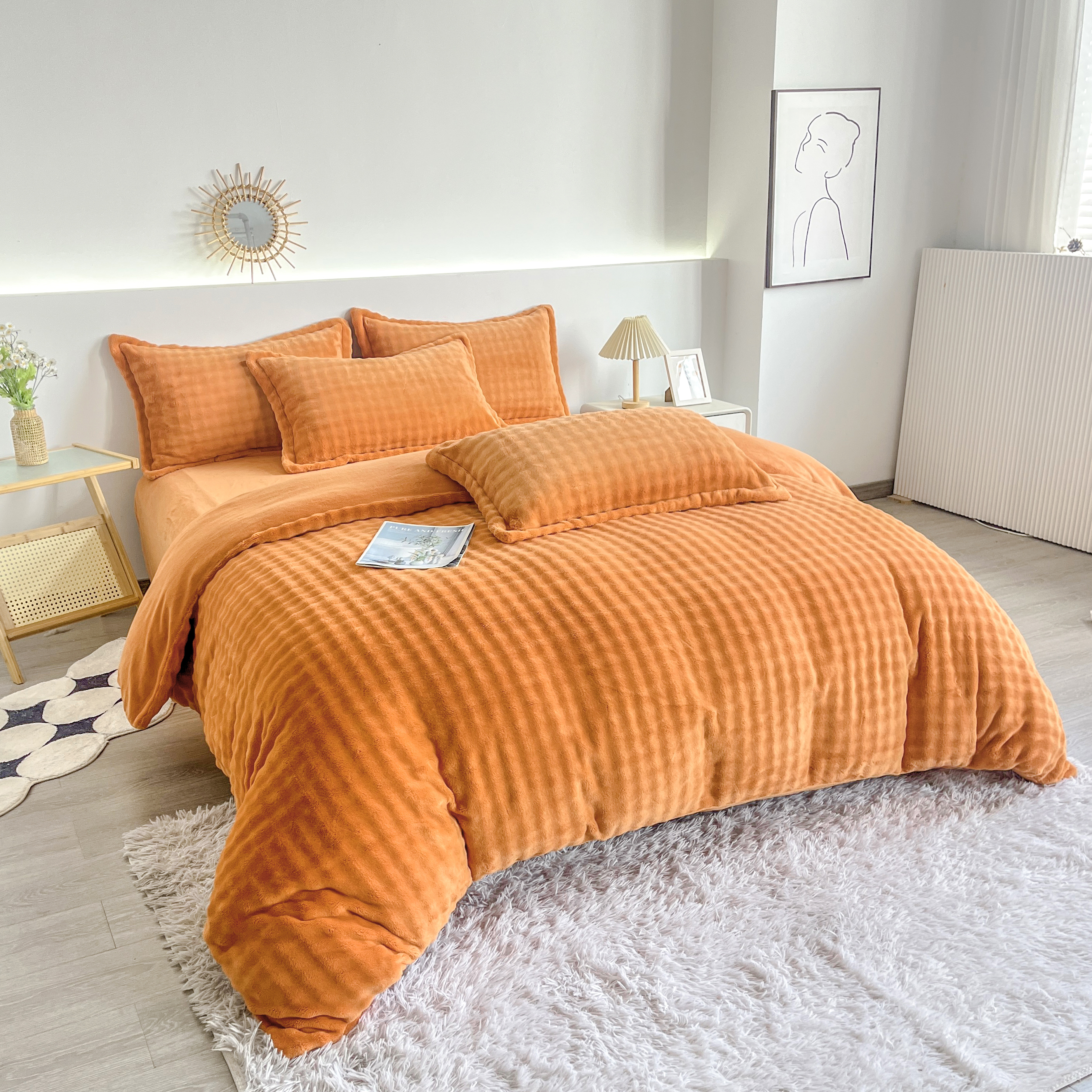 2025新款全消光皮草绒纯色高克重 四件套——泡泡(赠送拎袋) 橘色