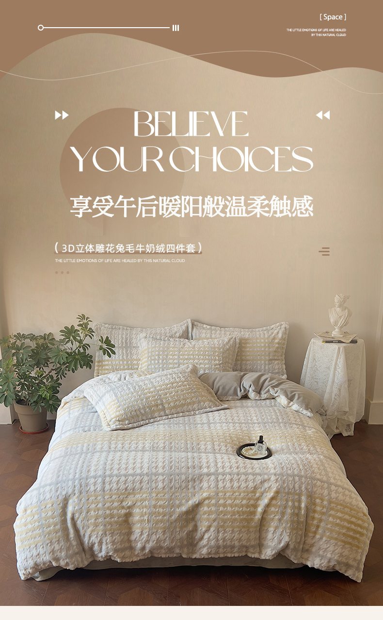 当前位置: 91家纺网 > 商品网购 > 床品套件 > 四件套 > 其它四件套 > 昊川家纺 2025新款3D立体兔毛雕花四件套 秘密花园-奶绿