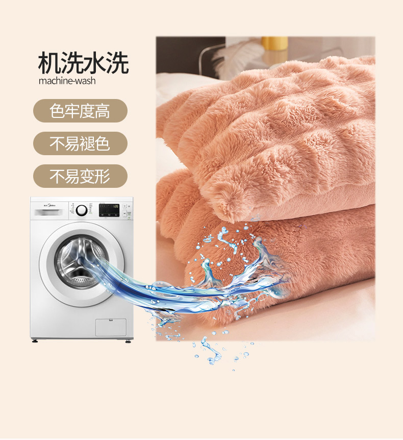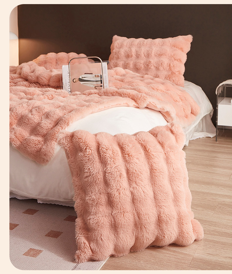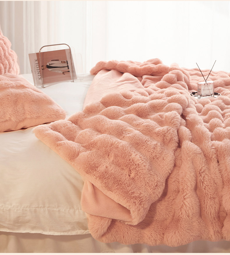 悦织湾家纺 2025新款轻奢纯色托斯卡纳兔毛绒大泡泡绒毛毯双面都是兔毛高密高克重可供跨境外贸出口 组合图