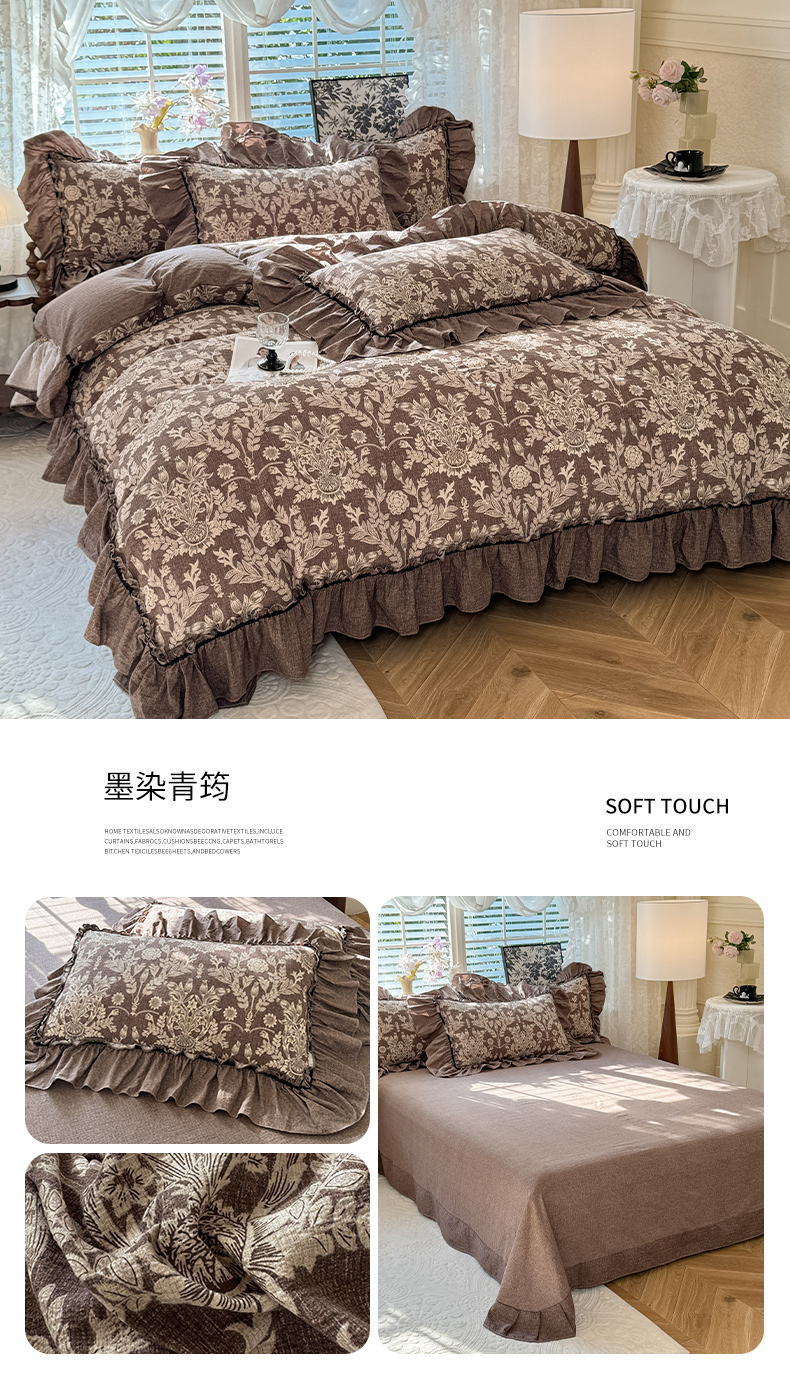 (总)唐人居 2026新款水洗棉花边床盖四件套-花影系列,花影-浅紫,花影-豆沙,花影-玫红,花影-暖橘,花影-苹果绿,花影-浅粉,花影-浅灰