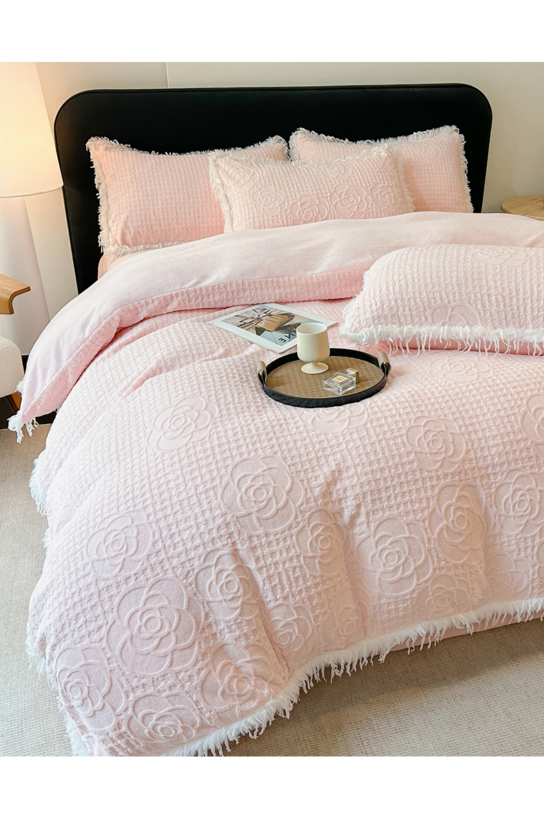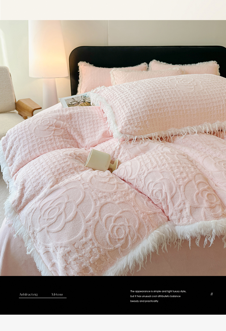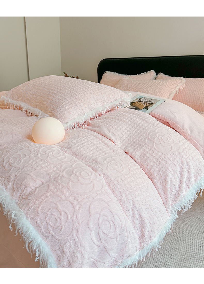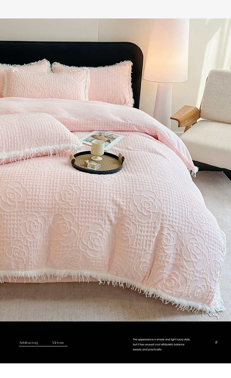 当前位置: 91家纺网 > 商品网购 > 床品套件 > 四件套 > 牛奶绒四件套 > 极简 2025新款立体雕花牛奶绒碎边四件套-米娅 米娅-粉