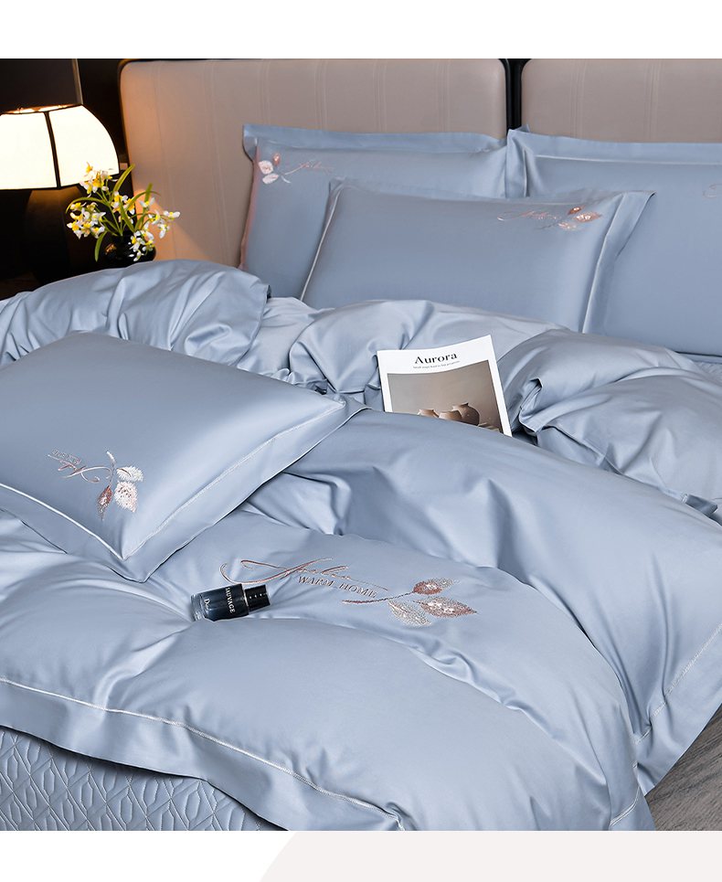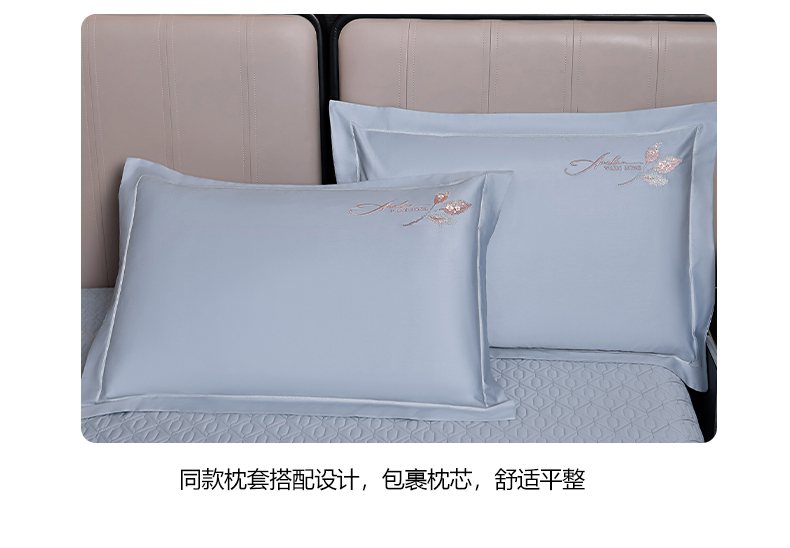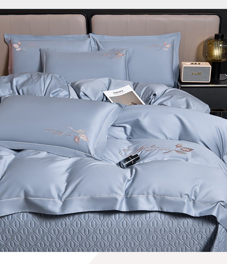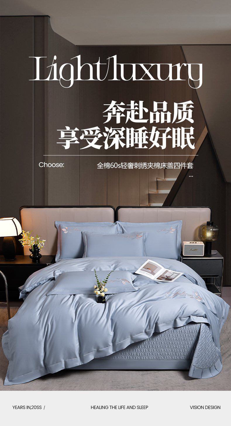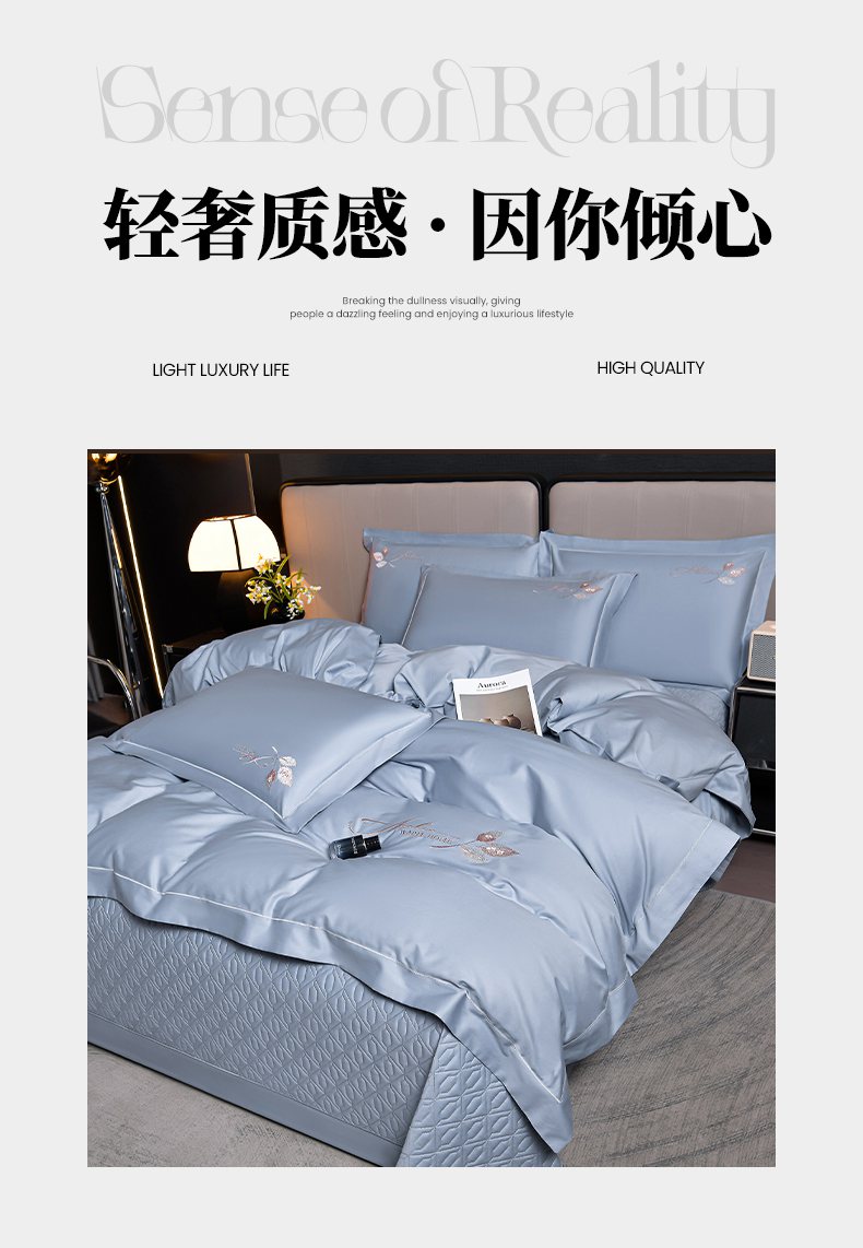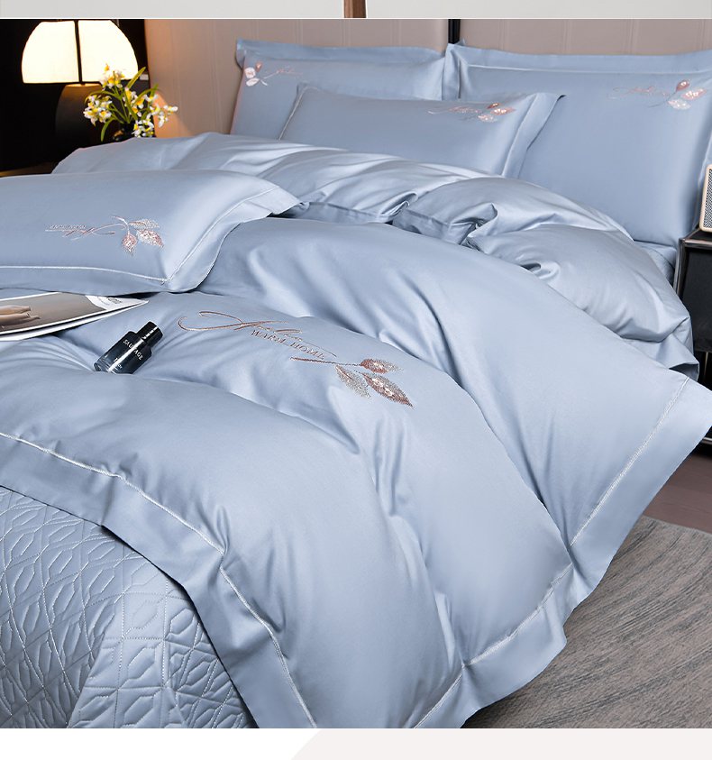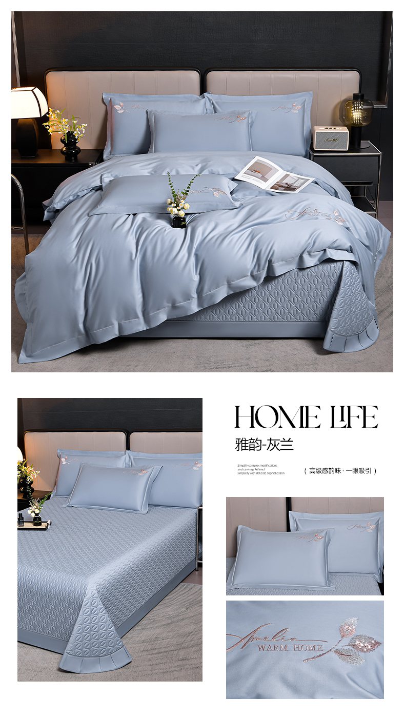 商品名称:畅畅家纺 2025新款全棉活性喷气简约轻奢刺绣夹棉床盖款四件套-雅韵 雅韵-灰兰