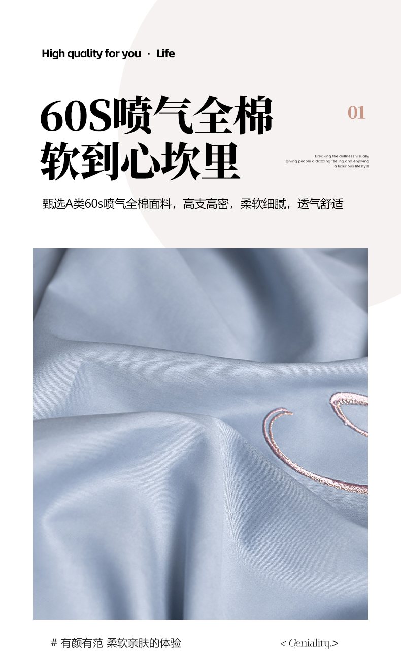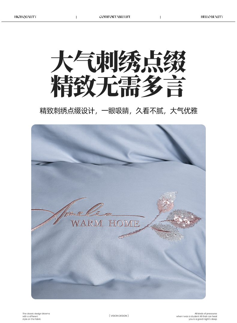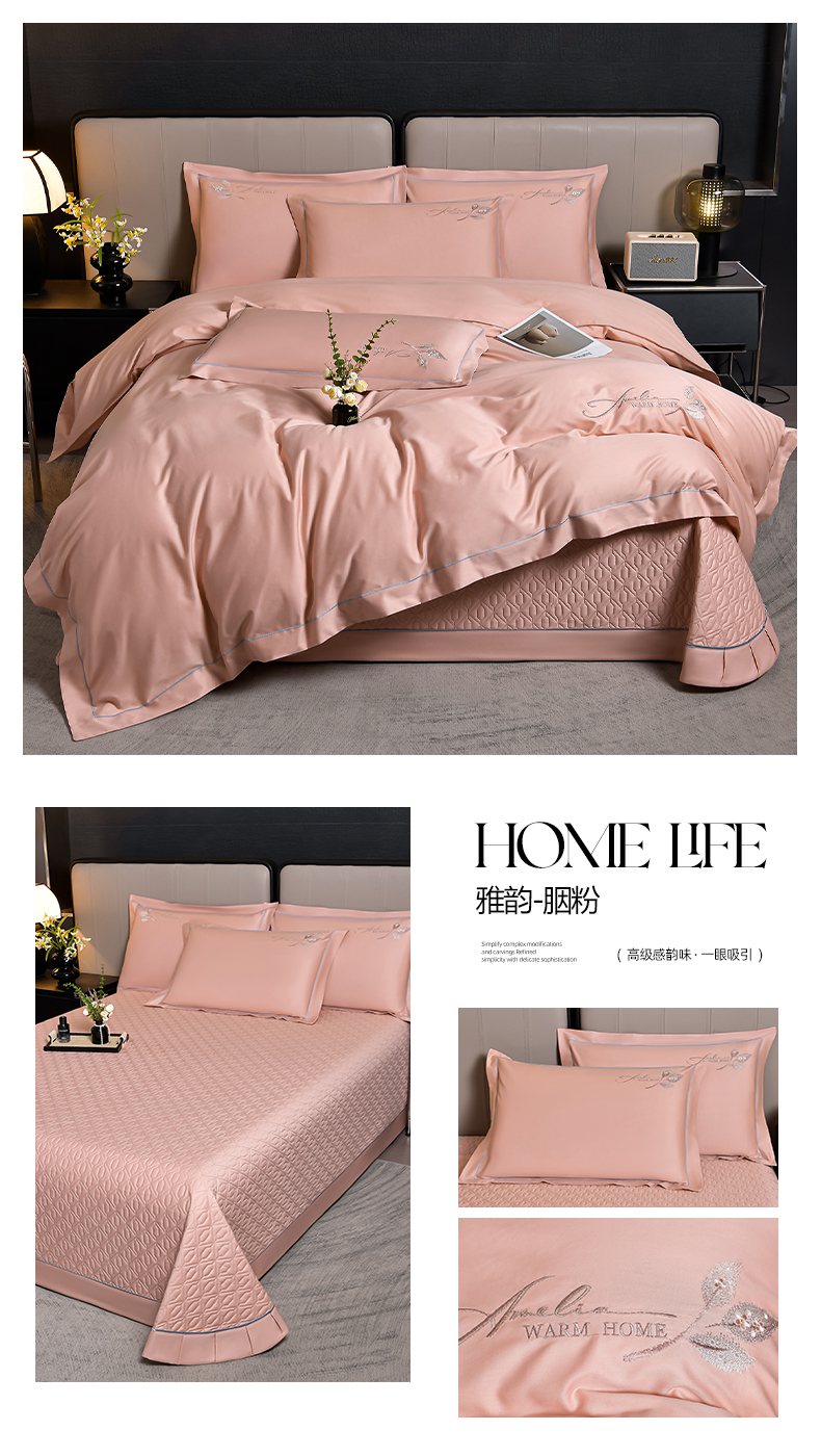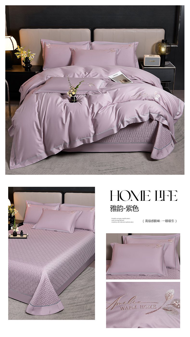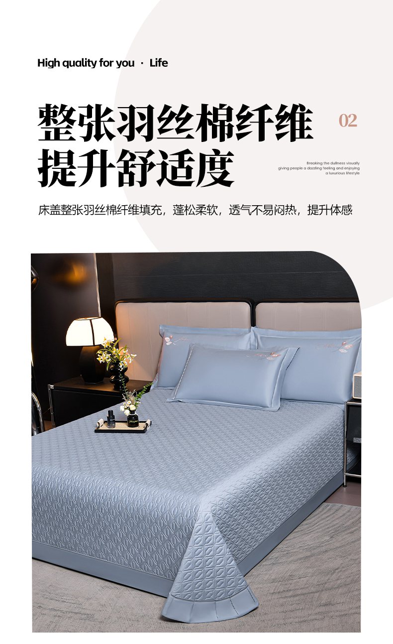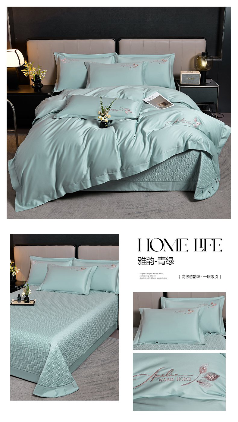 商品名称:畅畅家纺 2025新款全棉活性喷气简约轻奢刺绣夹棉床盖款四件套-雅韵 雅韵-灰兰