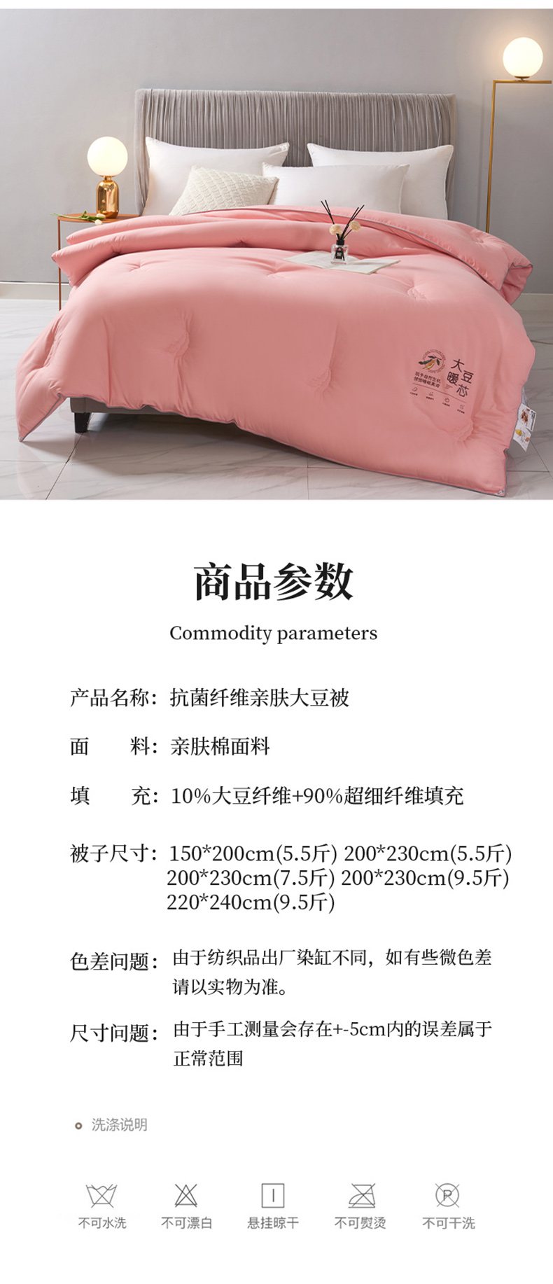 商品名称:畅畅家纺 2025新款洛卡棉抗菌纤维亲肤大豆被春秋被冬被被芯 浅粉玉