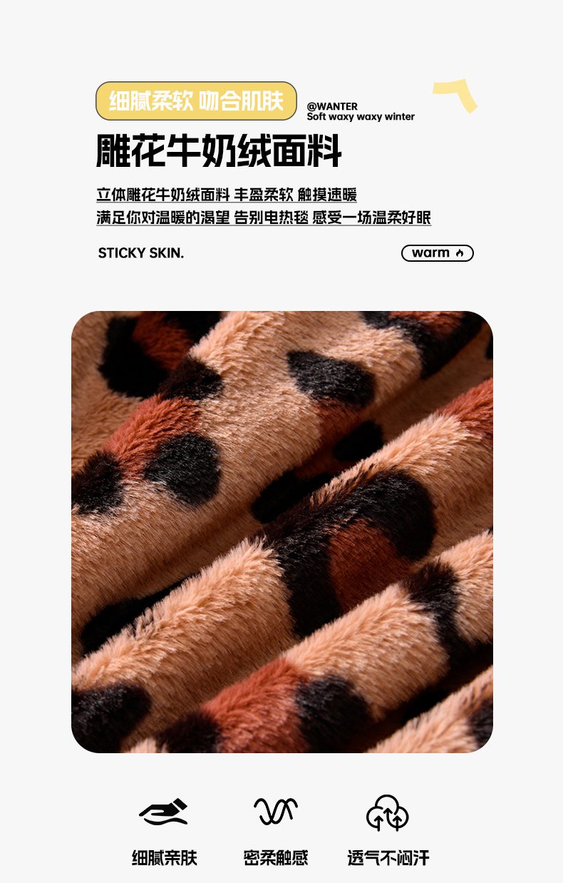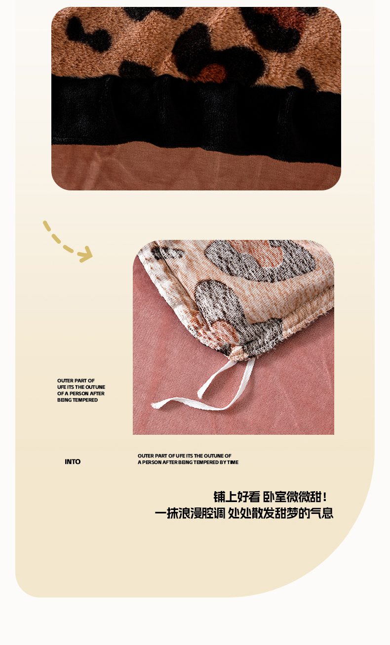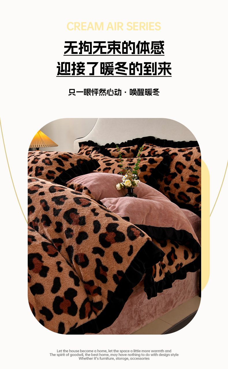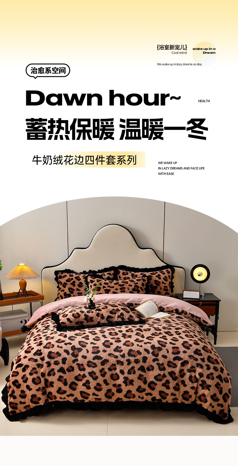 商品名称:畅畅家纺 2025新款冬季9斤重加厚皮草绒兔毛绒轻奢赫本风牛奶绒花边四件套 轻奢-小豹纹