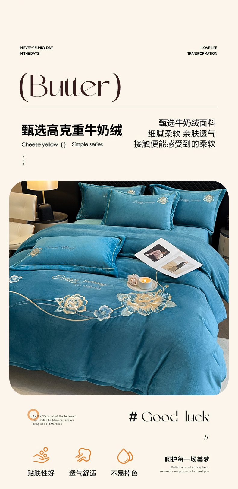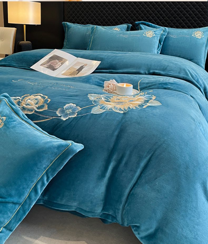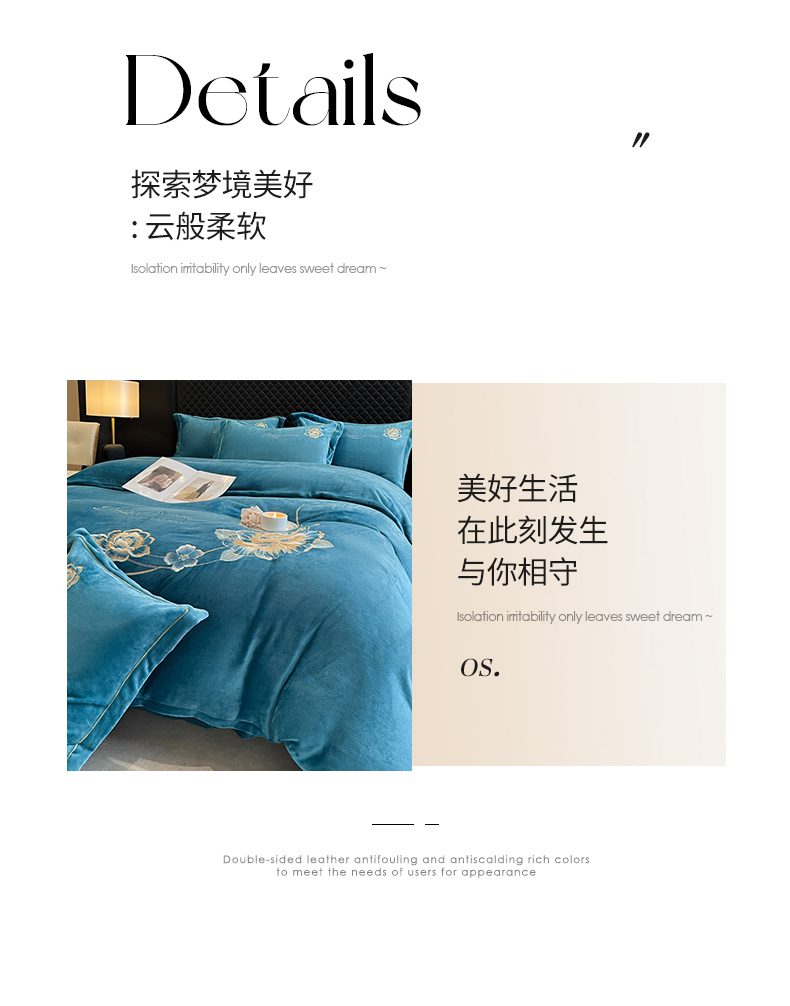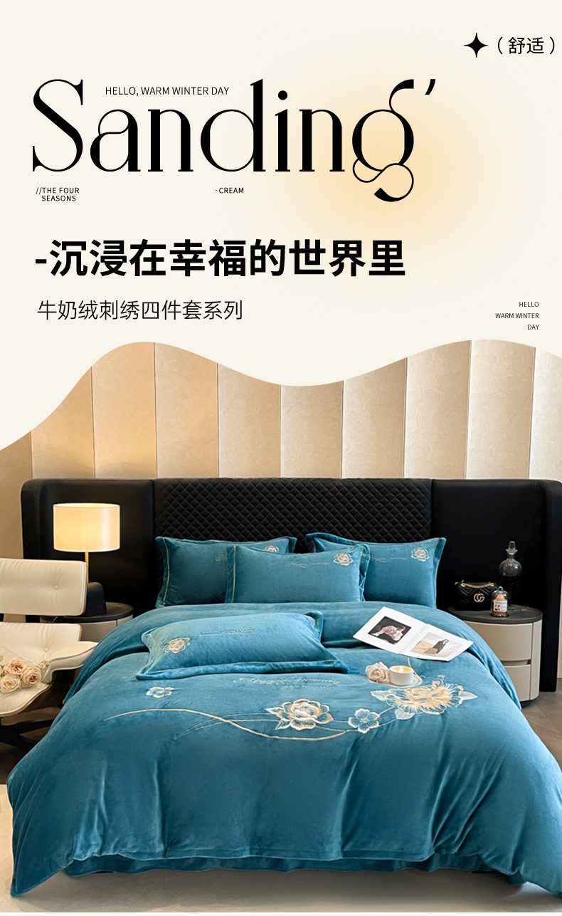 商品名称:畅畅家纺 2025新款冬季牛奶绒绣花绒四件套 芳华-宝蓝