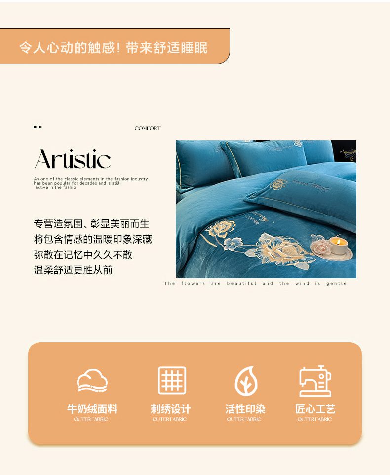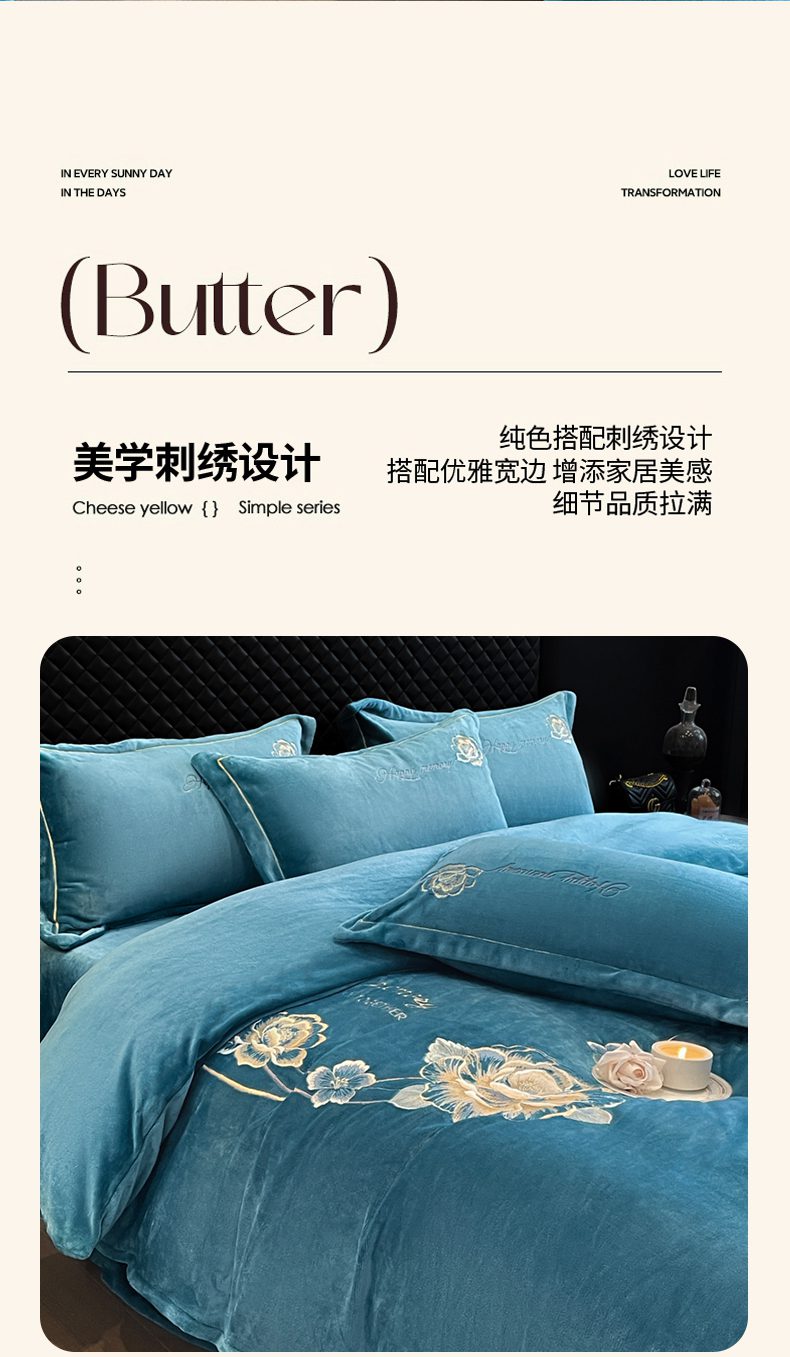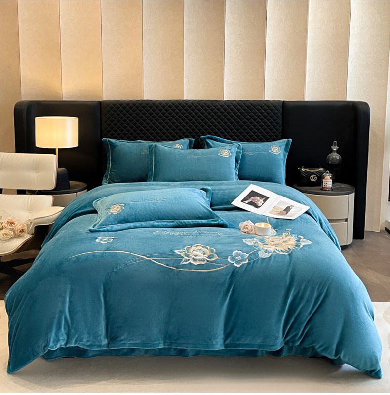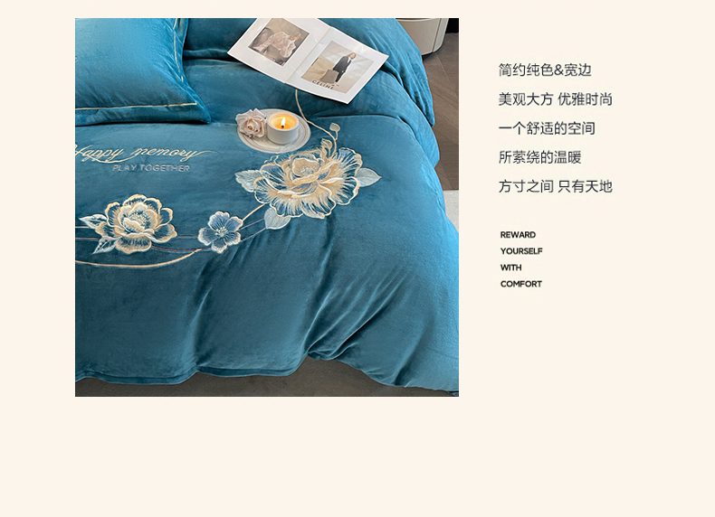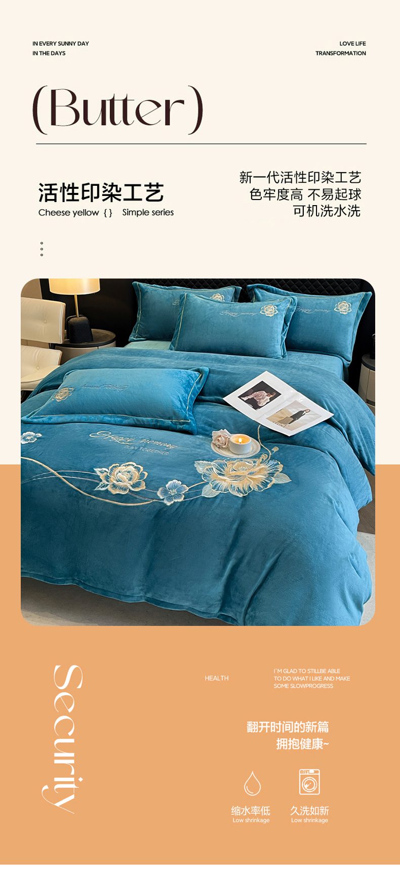 商品名称:畅畅家纺 2025新款冬季牛奶绒绣花绒四件套 芳华-宝蓝