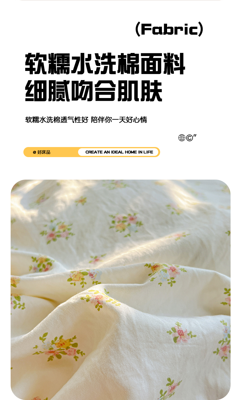 当前位置: 91家纺网 > 商品网购 > 床品套件 > 四件套 > 其它四件套 > 优选 2025新款加厚爆款小布袋韩国古法高克重水洗棉床单学生三件套床笠款四件套 甜梦花坊