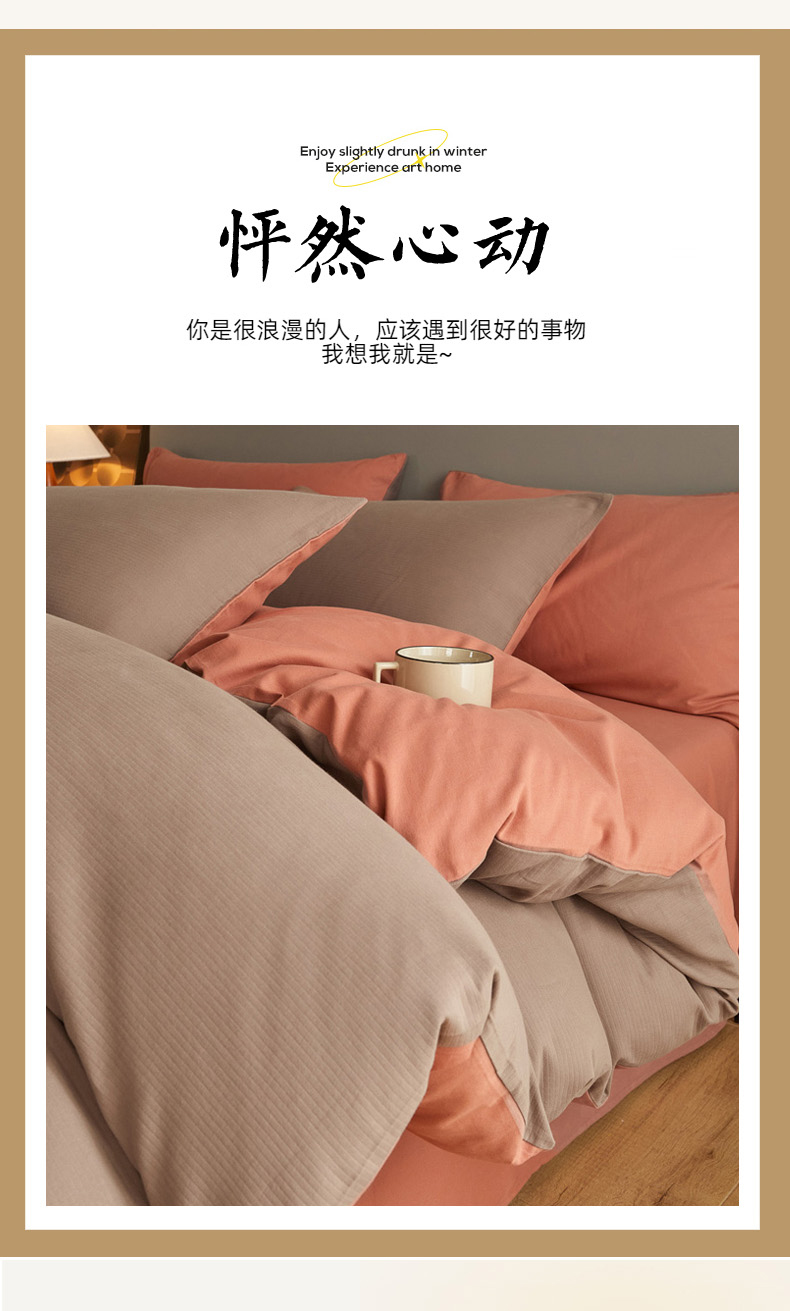 当前位置: 91家纺网 > 商品网购 > 床品套件 > 四件套 > 全棉活性四件套 > 慕尚家纺 2025新款100s全棉提花磨毛四件套 暖咖+橘黄