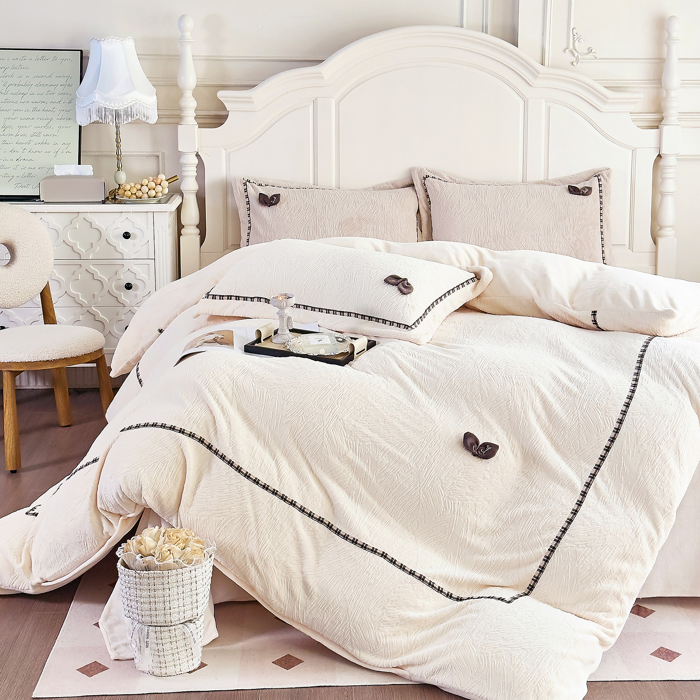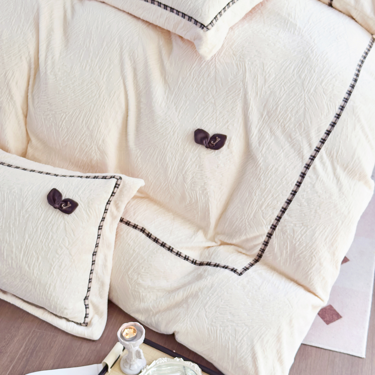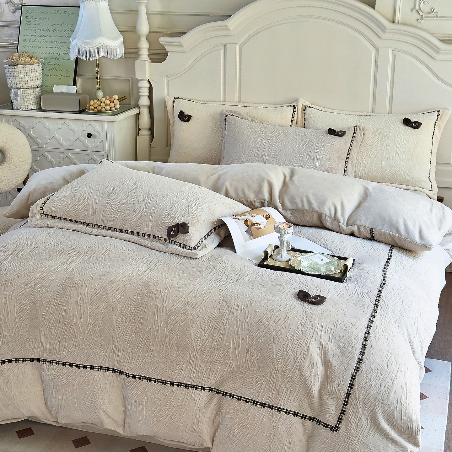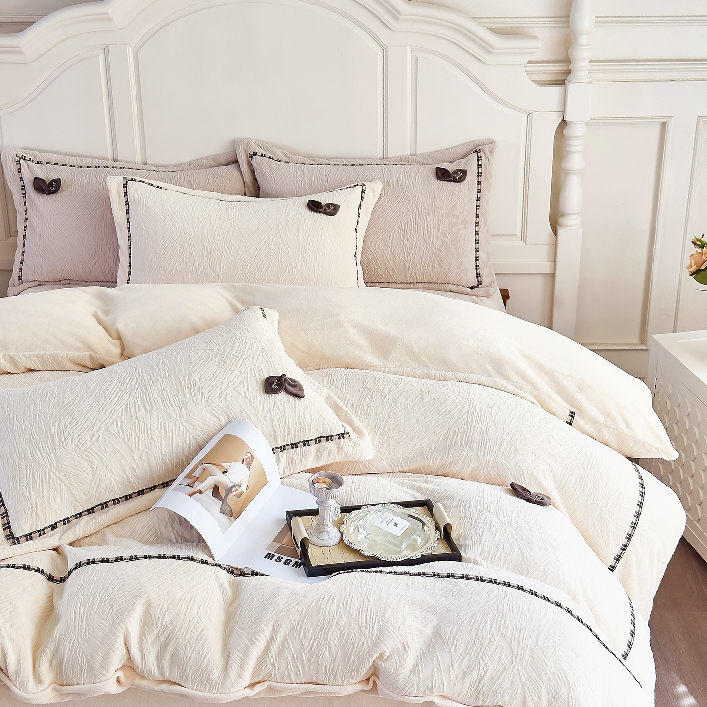 商品名称:北纬27度 2025新款极简小轻奢牛奶绒四件套-烟雨星云 烟雨星云-奶白