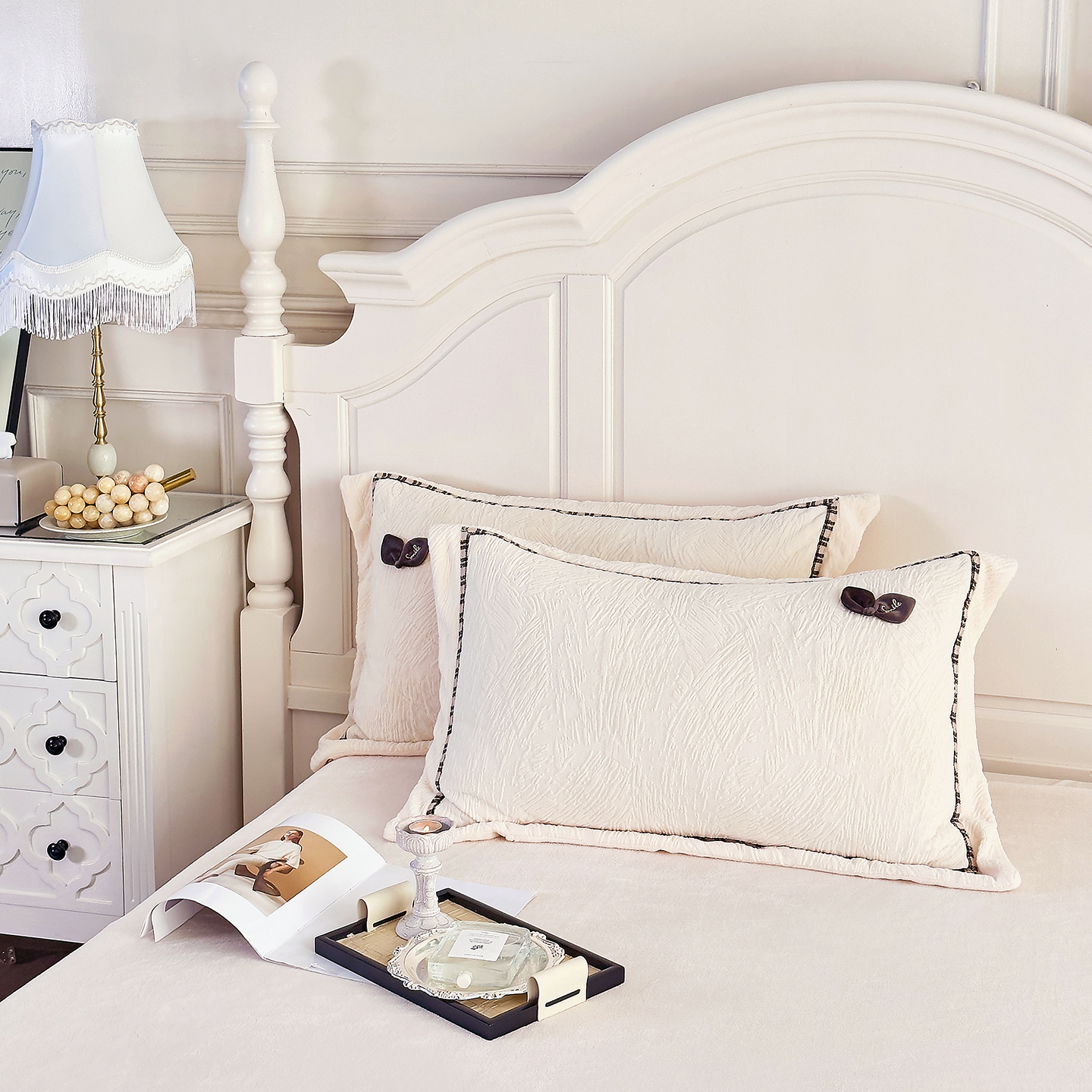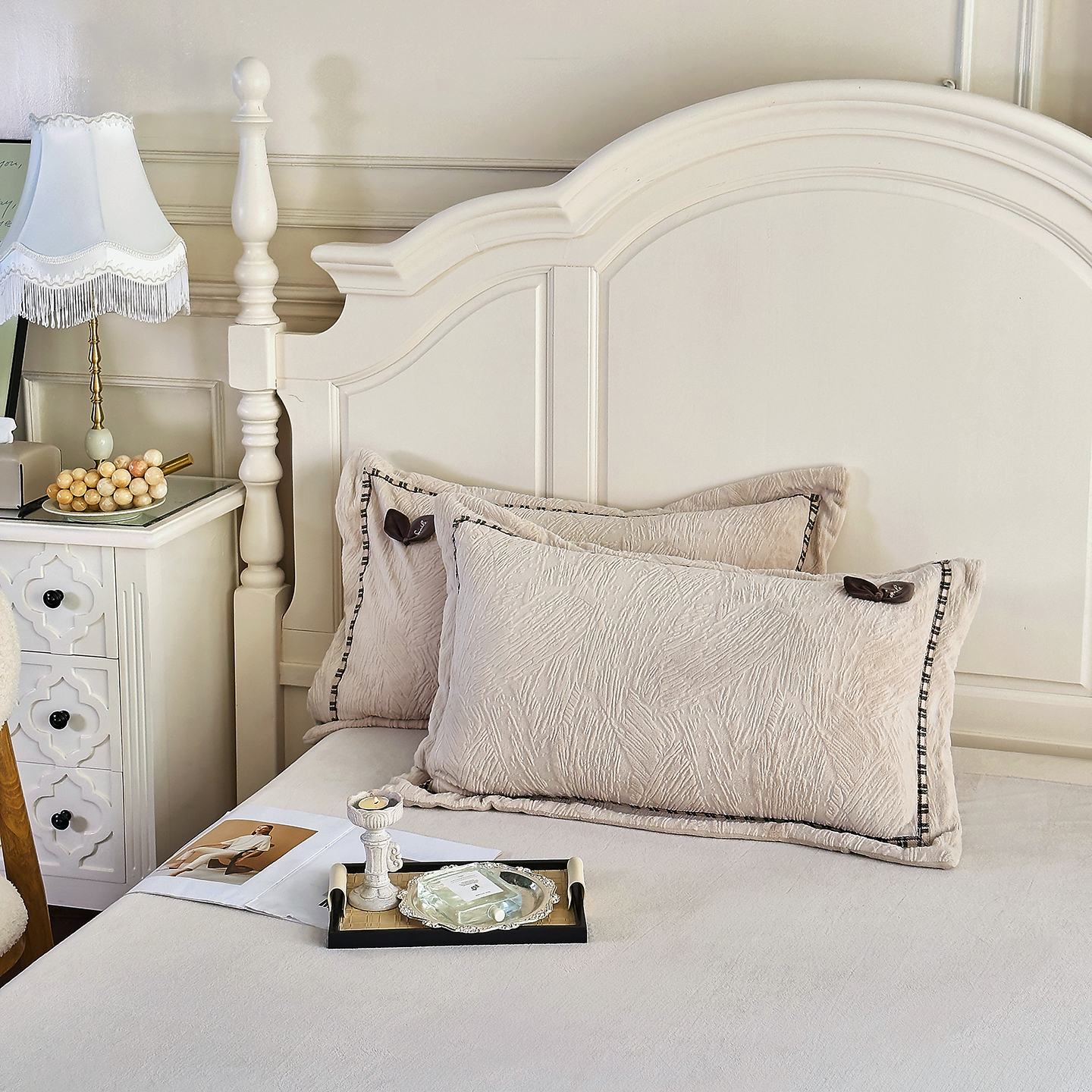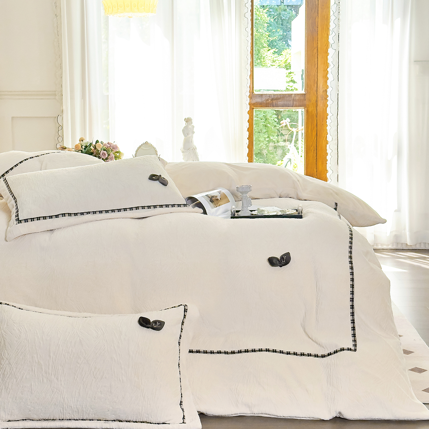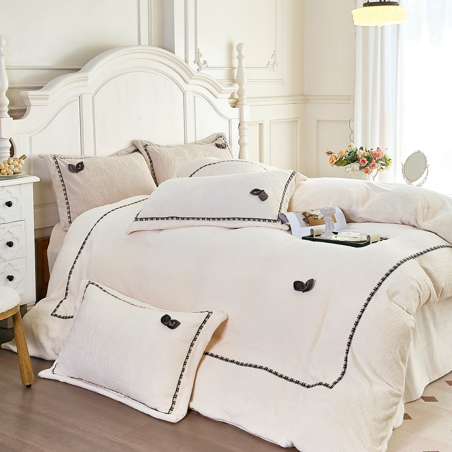 商品名称:北纬27度 2025新款极简小轻奢牛奶绒四件套-烟雨星云 烟雨星云-奶白