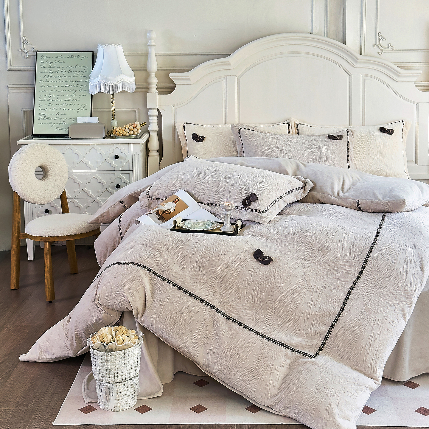 北纬27度 2025新款极简小轻奢牛奶绒四件套-烟雨星云 烟雨星云-奶白