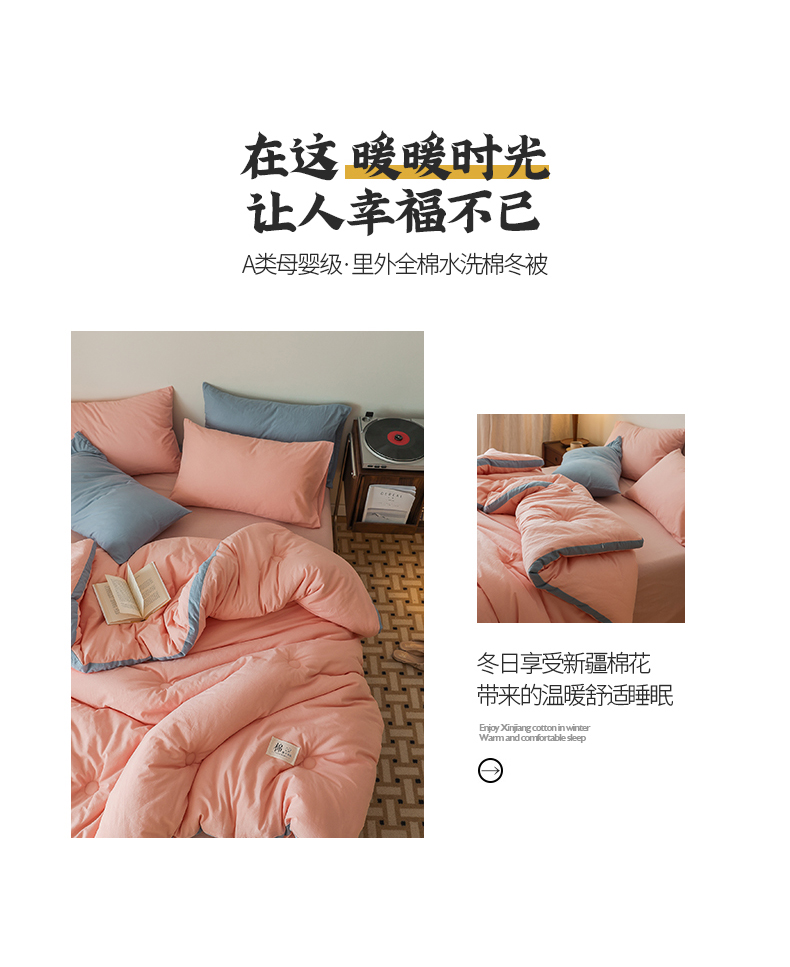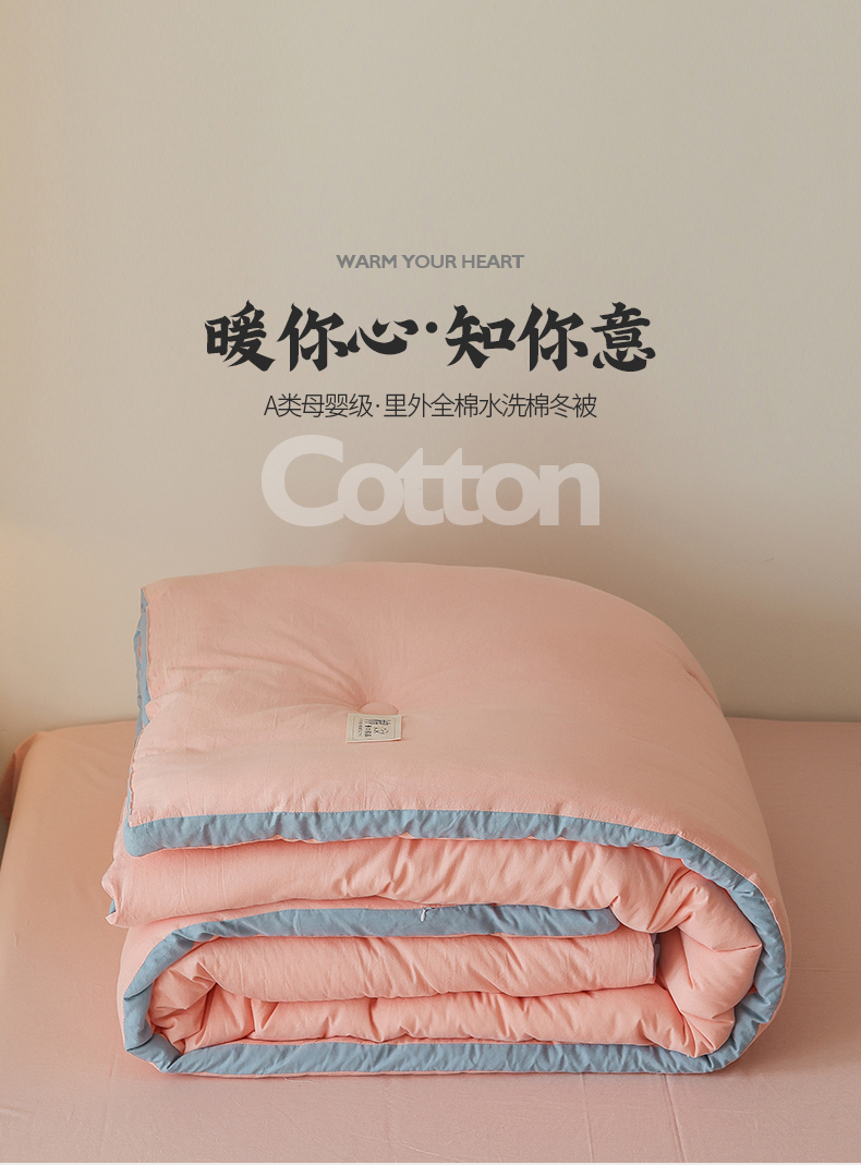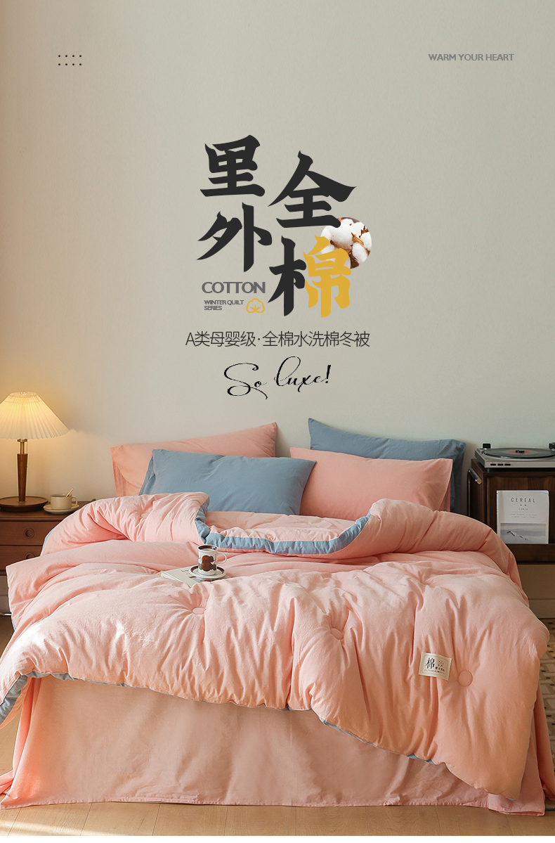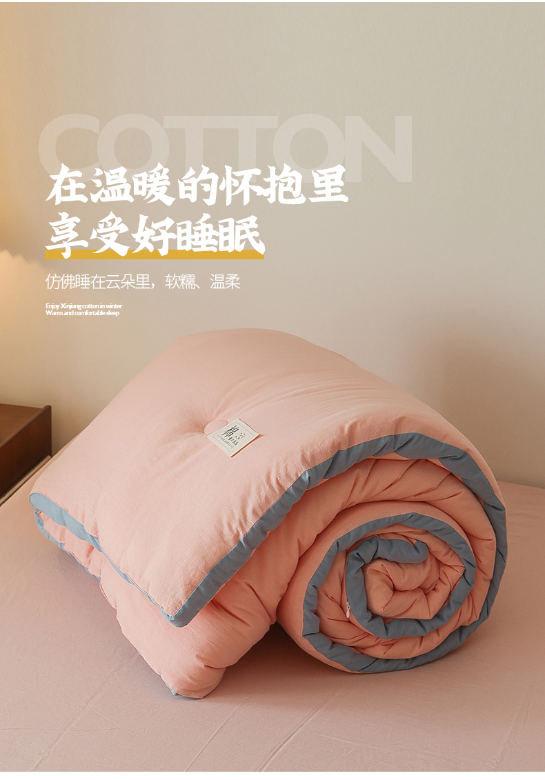 • 91家纺网 家纺一手货源 找家纺 雯雨家纺 2025新款里外全棉新疆棉花被被子被芯 文艺粉