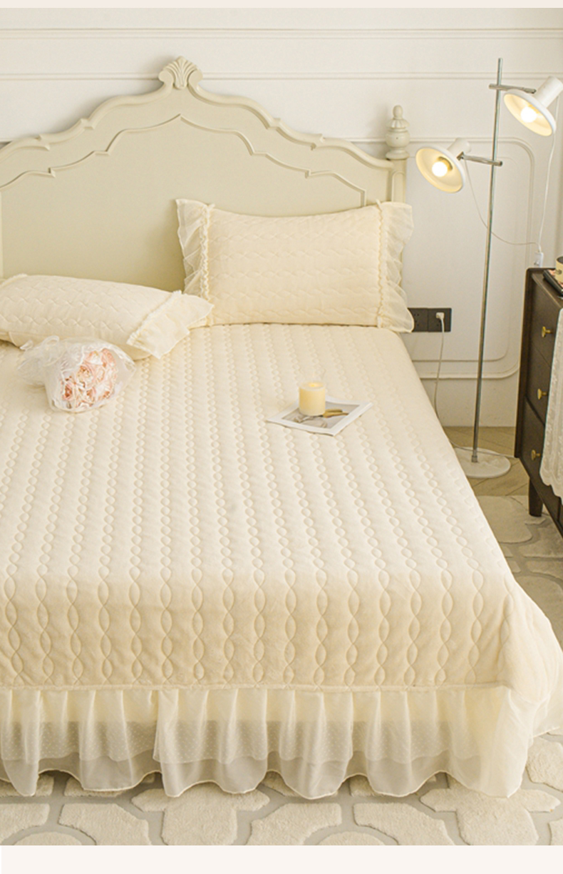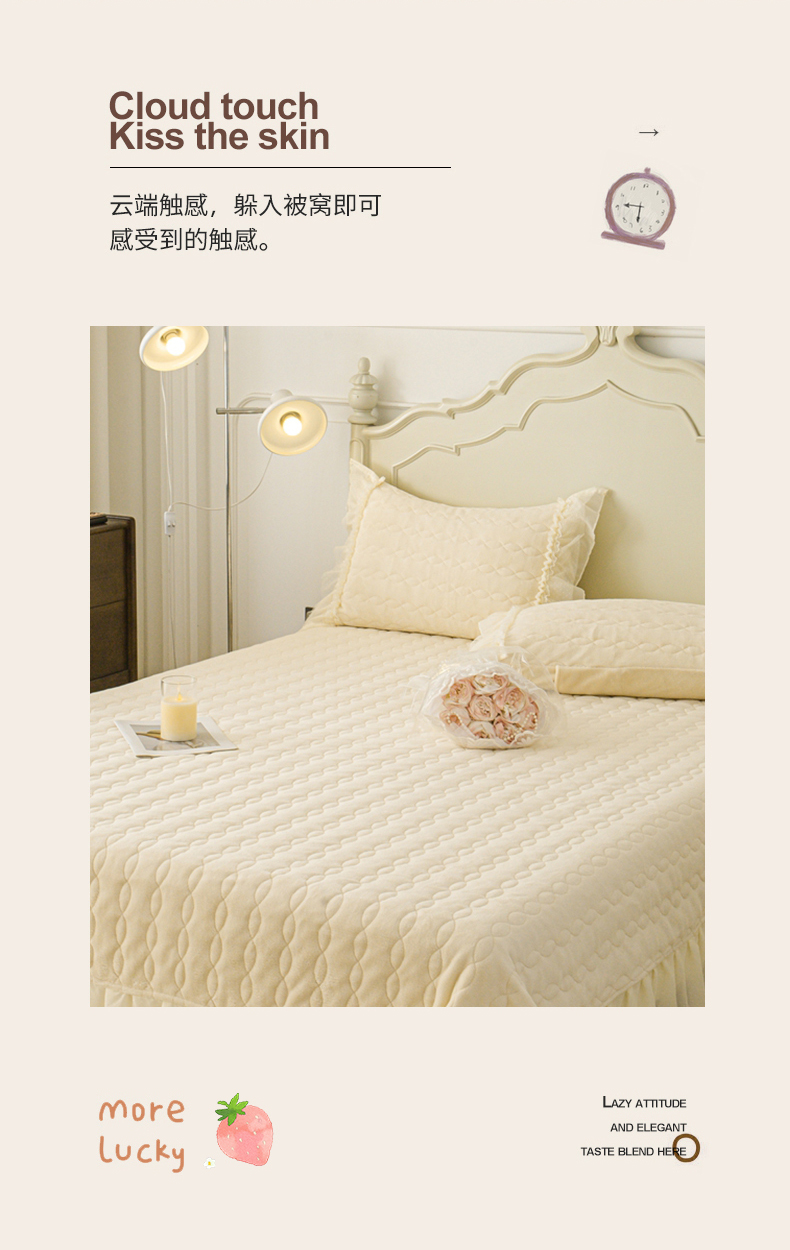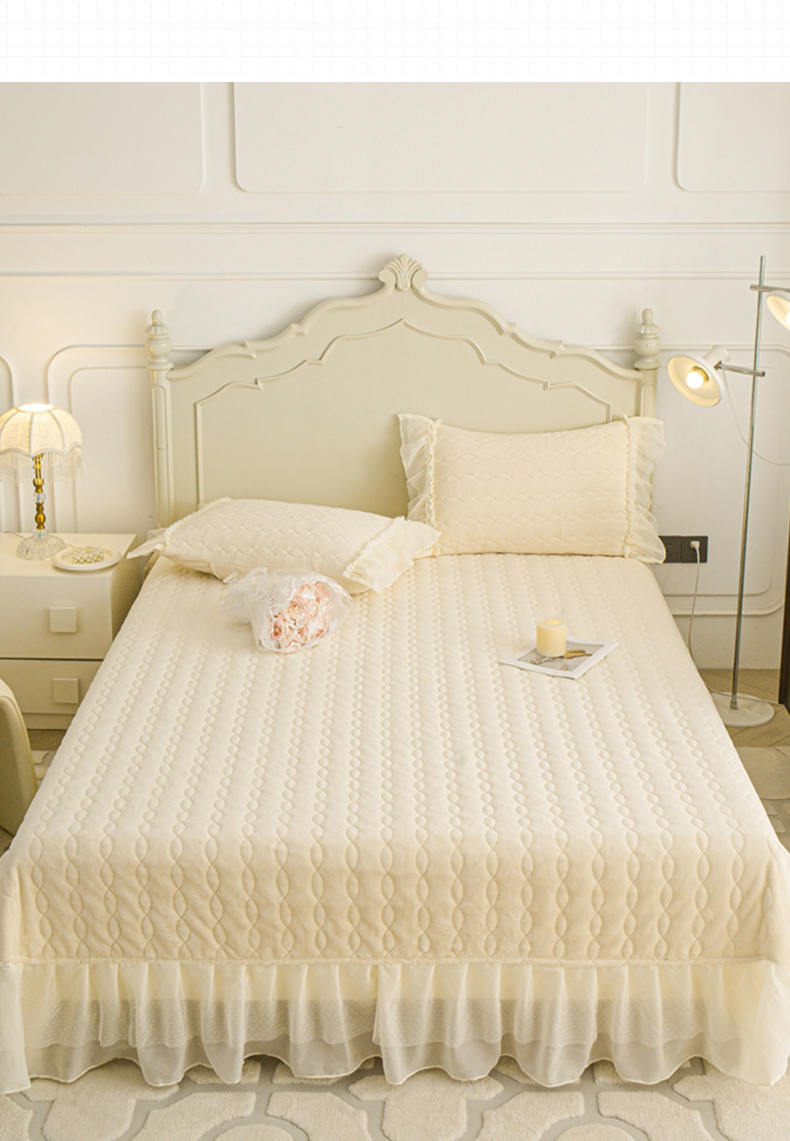 胜权家纺 2025秋冬新款A类全消光高克重5D雕花牛奶绒仙女风夹棉床盖单品系列 梦安娜-浅米