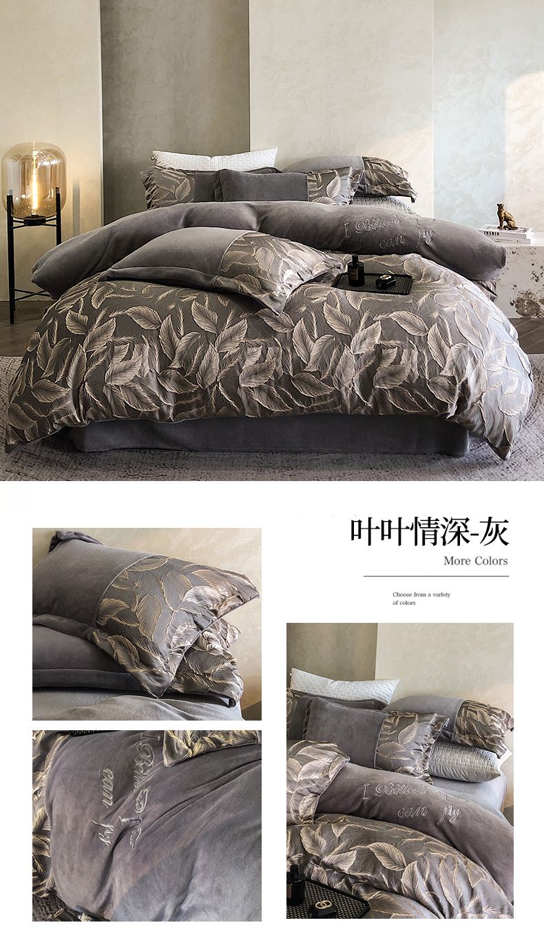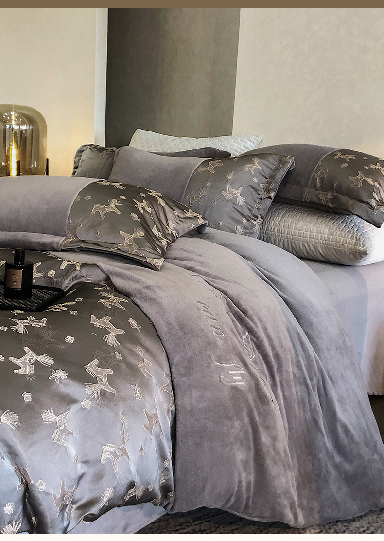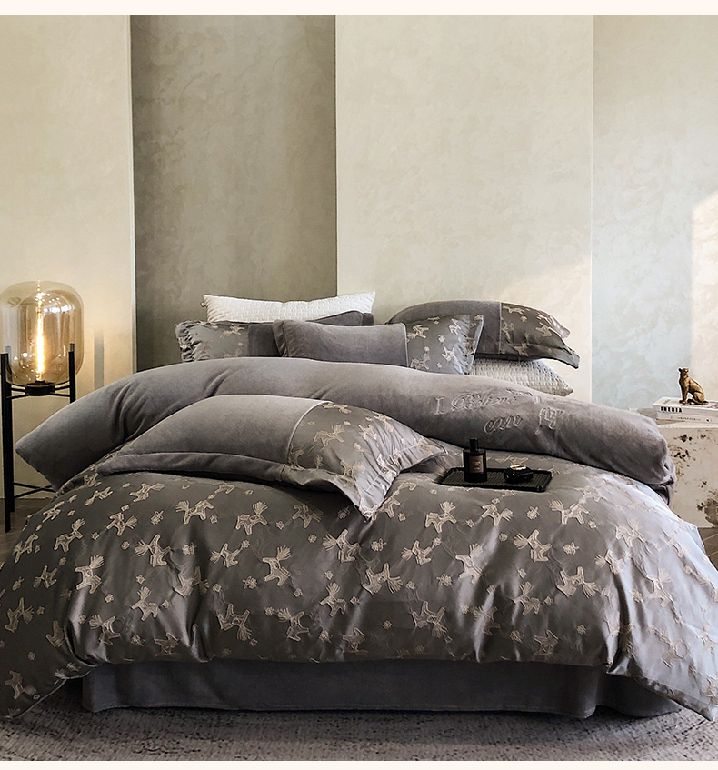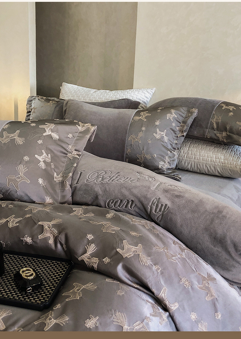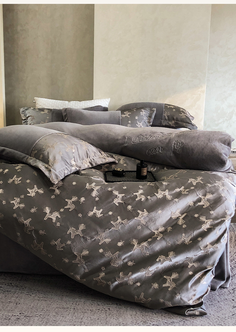 商品名称:换种生活 2025新款A类浮雕牛奶绒刺绣四件套 马上有钱花-灰