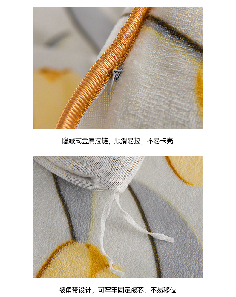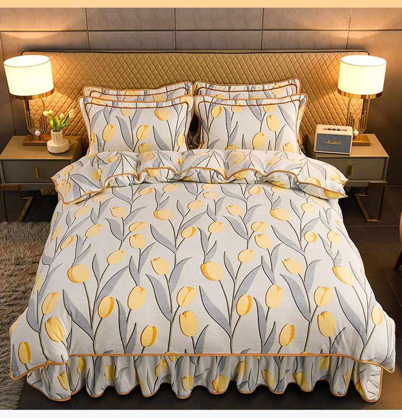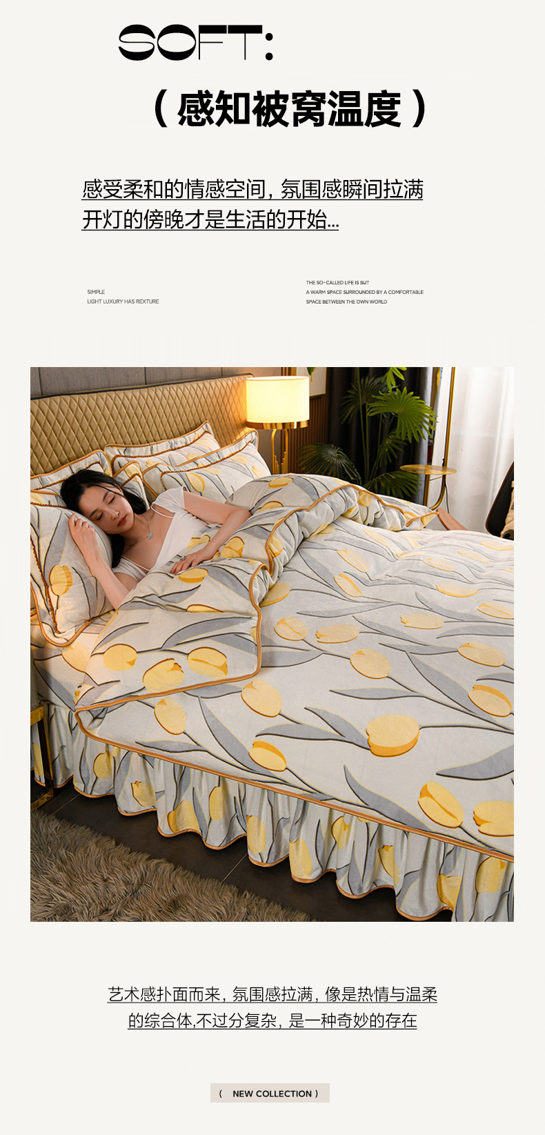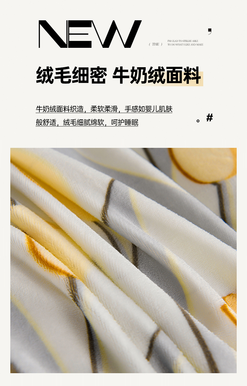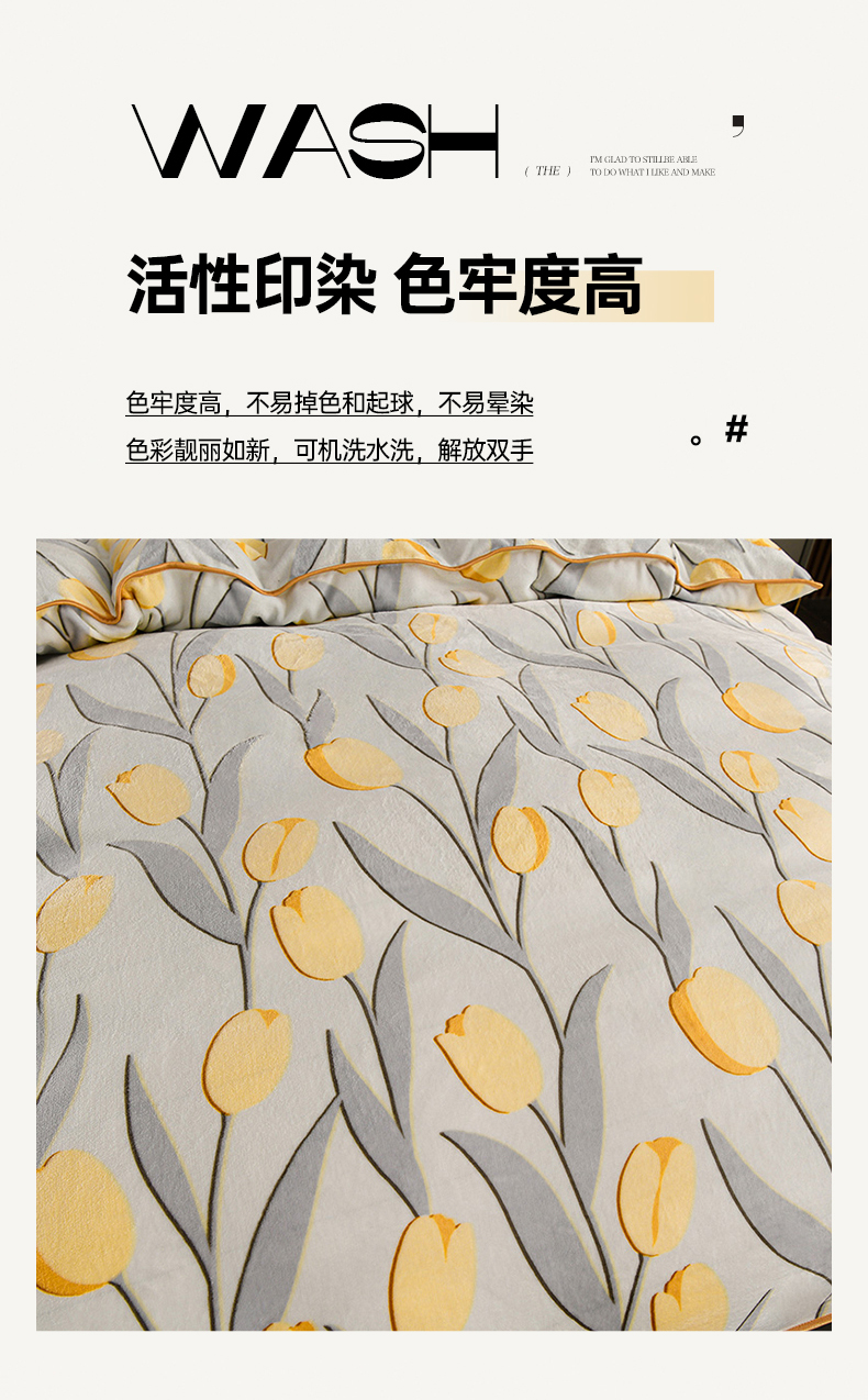 商品名称:牵依 2025新款牛奶绒小包边印花四件套 浪漫郁金香-米黄