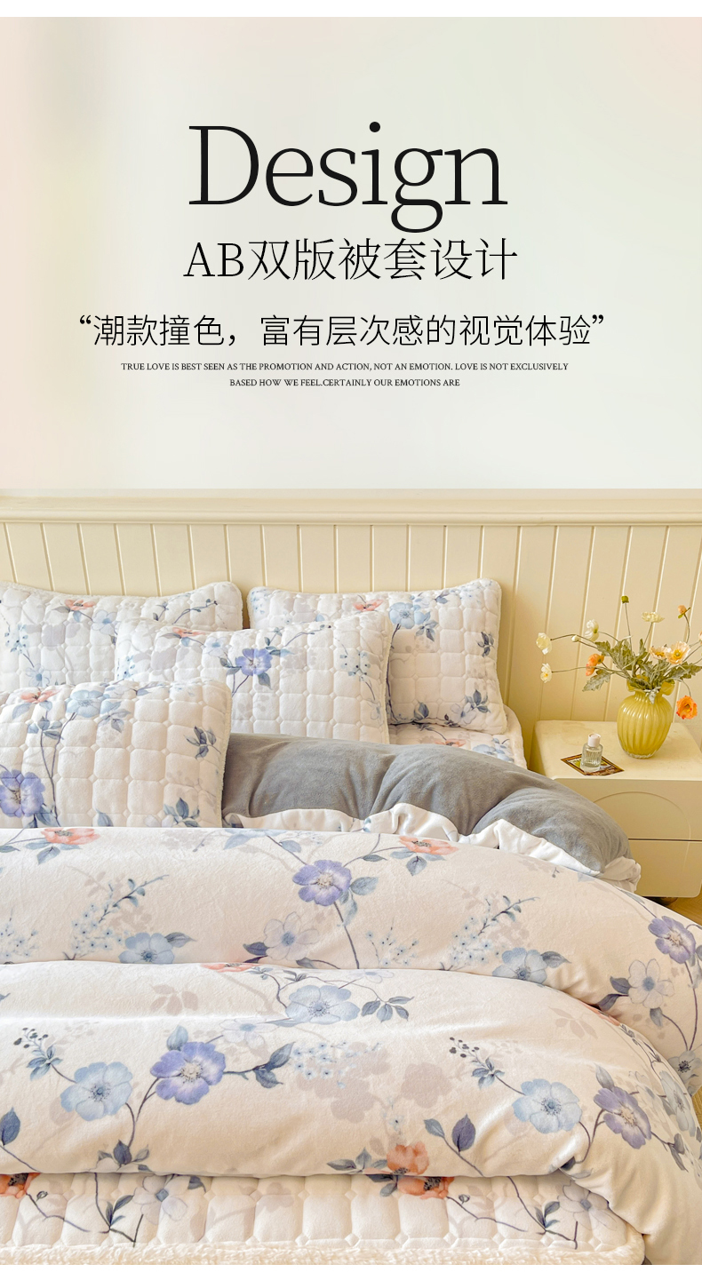 商品名称:LIFE.丽芙 2025秋冬新款A类牛奶绒加厚夹棉床褥垫+被套组合四件套 司藤