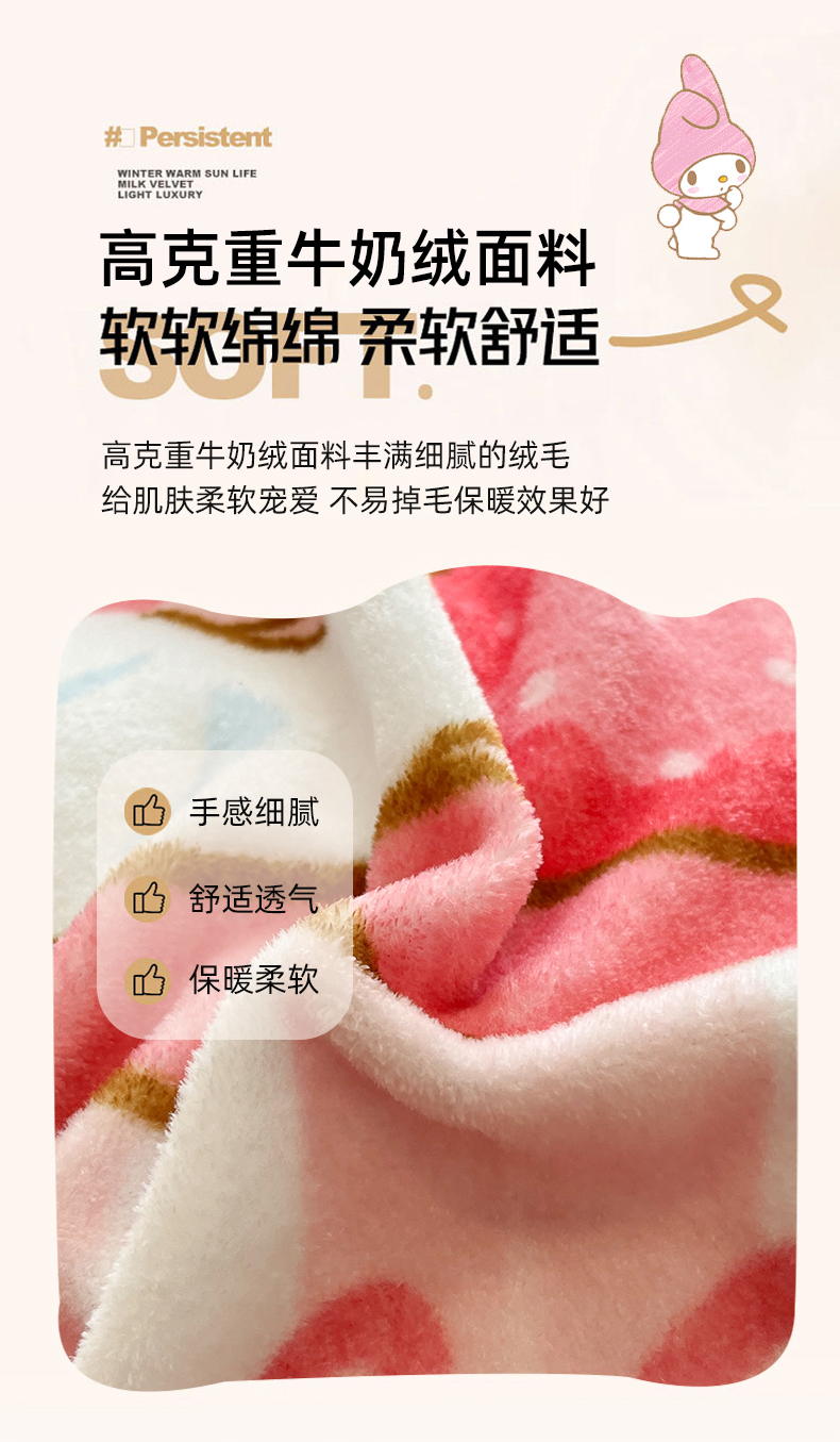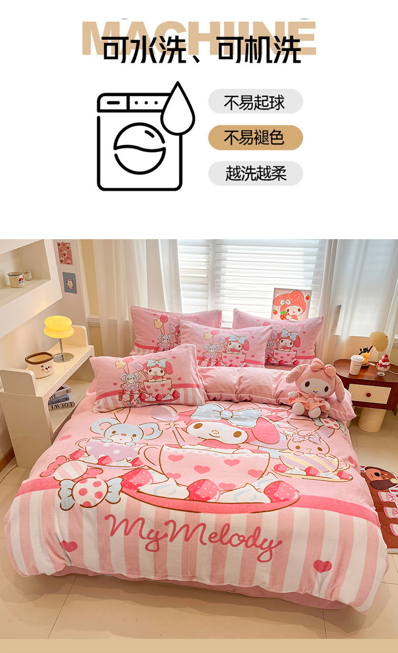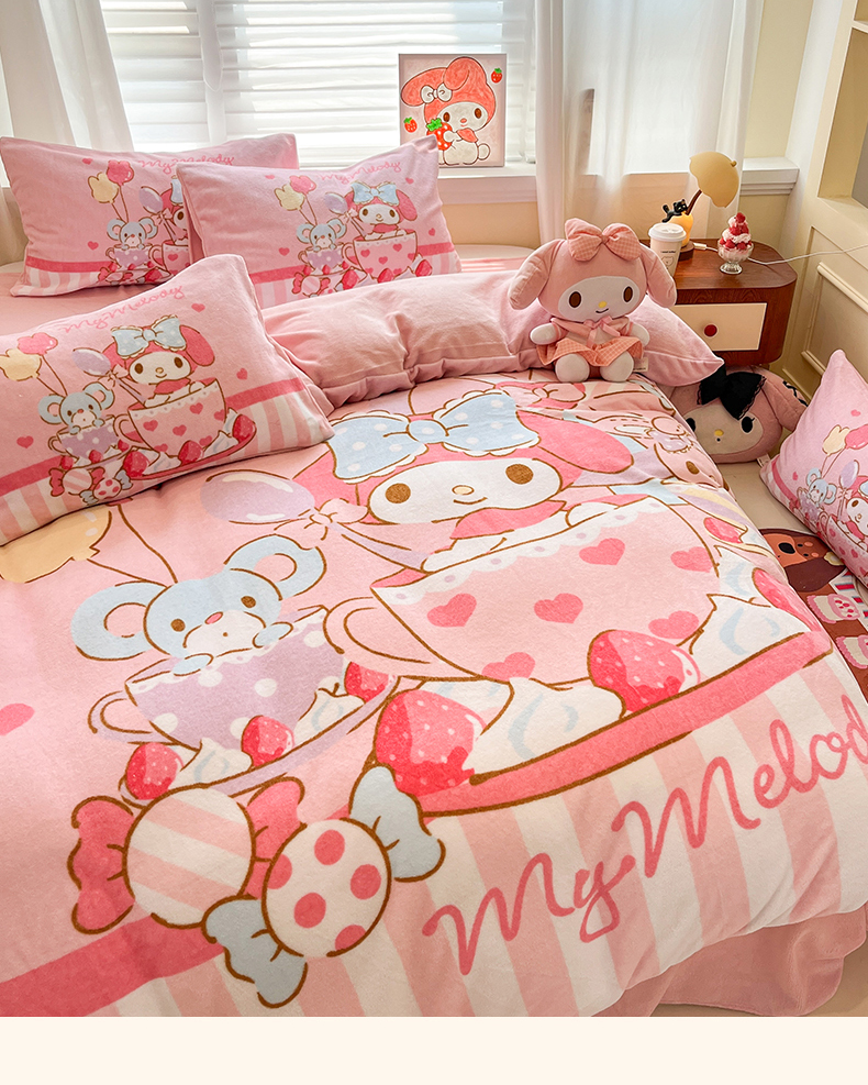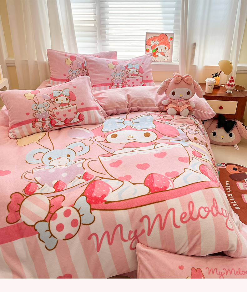 当前位置: 91家纺网 > 商品网购 > 床品套件 > 四件套 > 牛奶绒四件套 > 金爱家 2025新品正版三丽鸥授权大版卡通平网数码印花加厚高克重牛奶绒系列四件套 绒大版-开心美乐蒂
