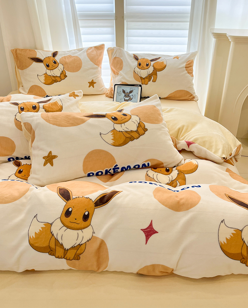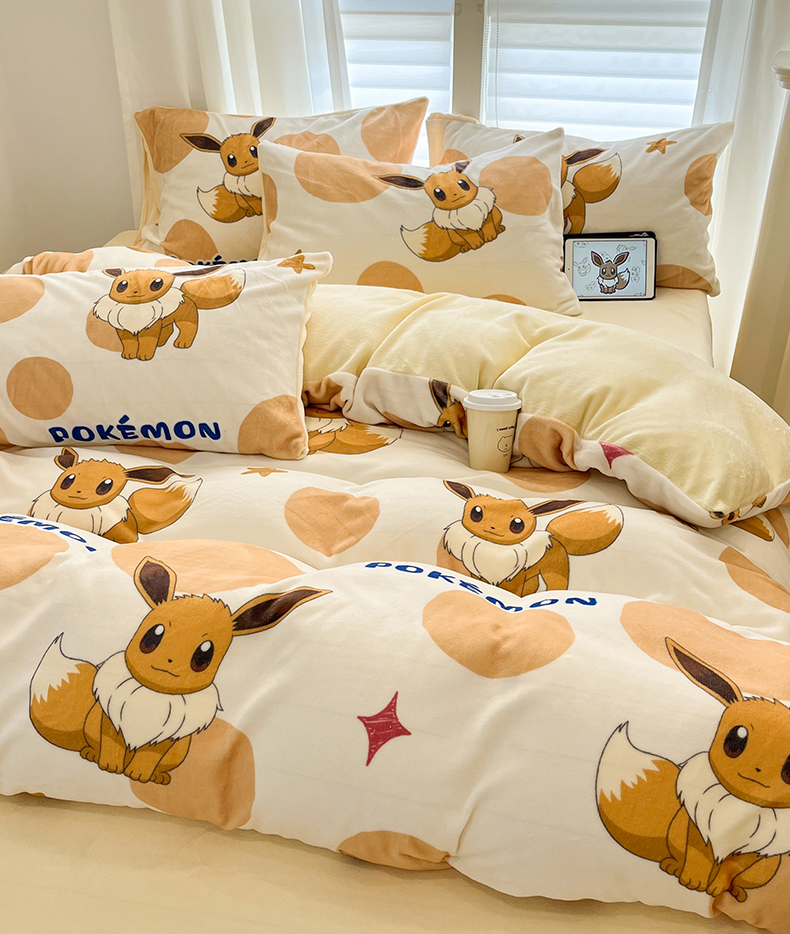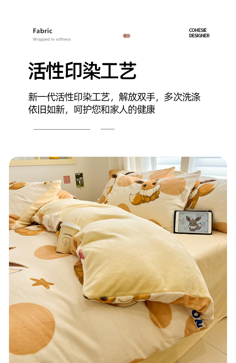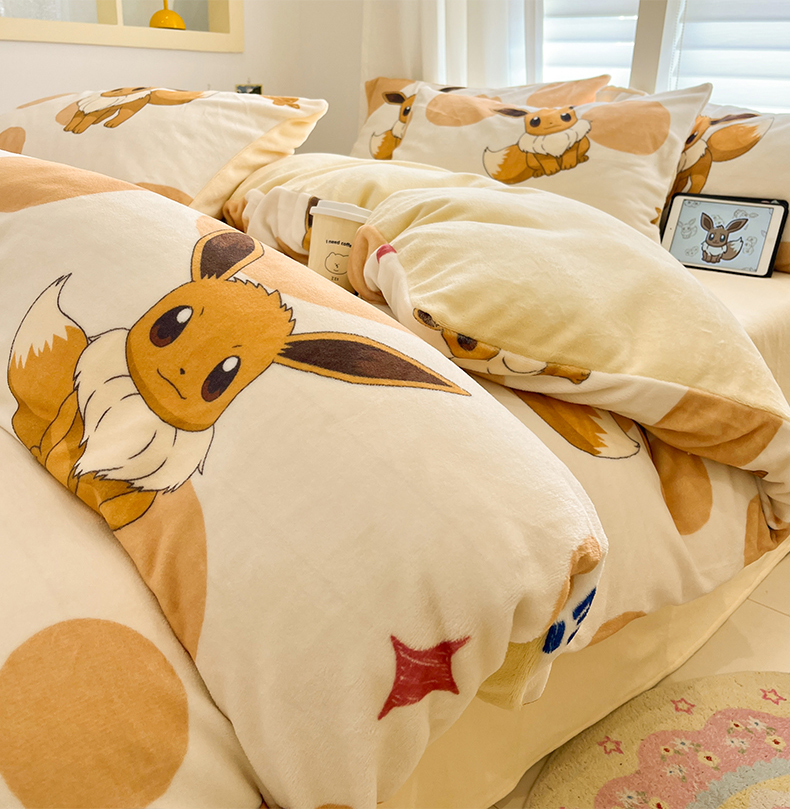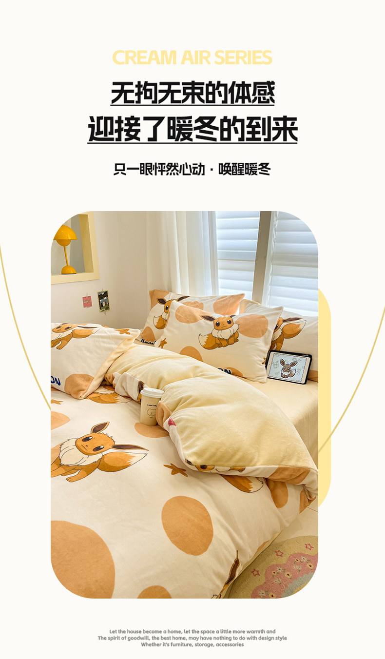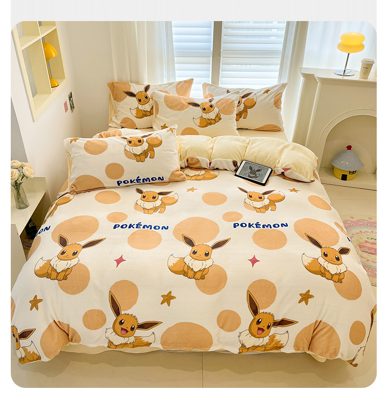 当前位置: 91家纺网 > 商品网购 > 床品套件 > 四件套 > 牛奶绒四件套 > 金爱家 2025新品大版卡通平网数码印花加厚高克重牛奶绒皮卡丘系列四件套 绒小版-泡泡伊布