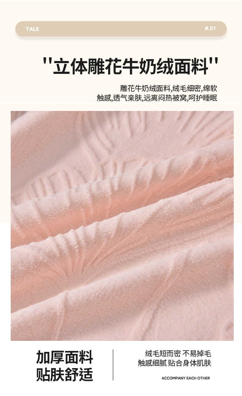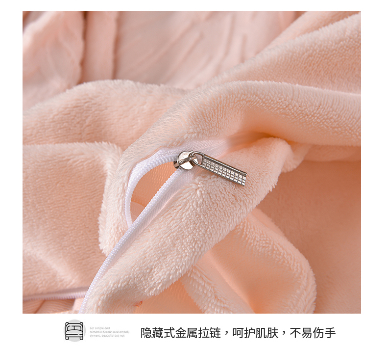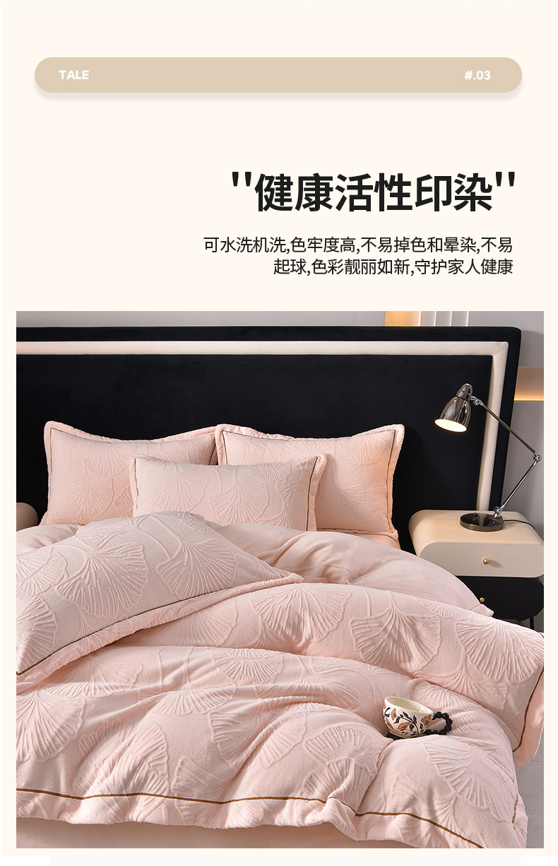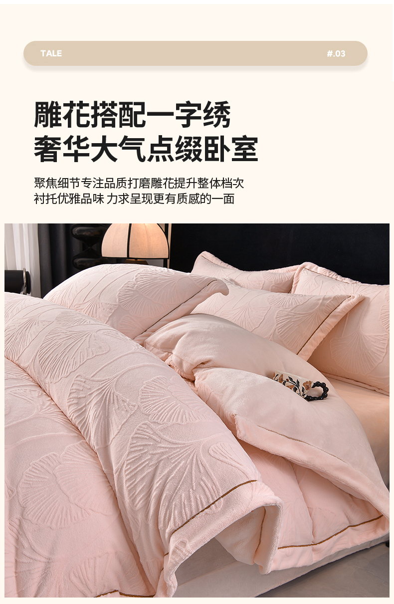 商品名称:苏迪网销供货 2025新款牛奶绒四件套A类高克重全消光雕花一字绣工艺款 银杏叶-粉玉