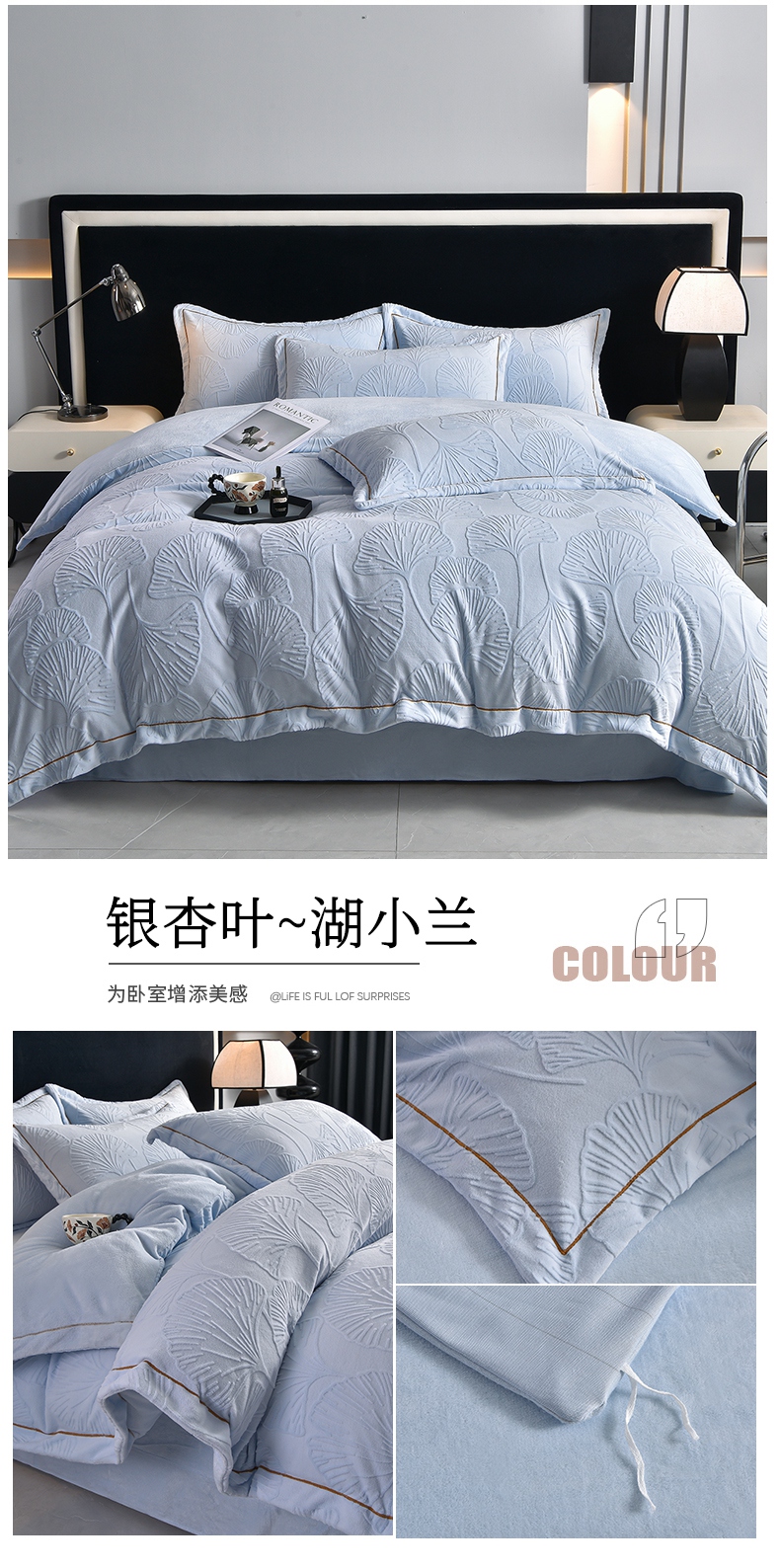 (总)苏迪网销供货 2025新款牛奶绒四件套A类高克重全消光雕花一字绣工艺款,银杏叶-香芋紫,银杏叶-湖小兰,银杏叶-豆绿,银杏叶-粉玉,百合-大红,百合-奶咖,百合-香芋紫,芭蕉叶-豆绿,芭蕉叶-粉玉,芭蕉叶-高级灰,芭蕉叶-湖小蓝,芭蕉叶-米白,芭蕉叶-香芋紫