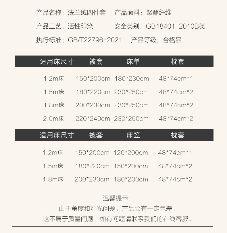 【床笠款】1.8四件套-被套200x230 | ¥95.00 |