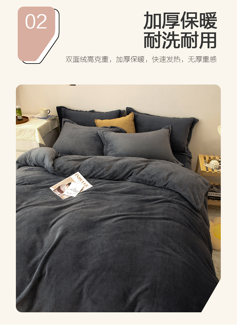 当前位置: 91家纺网 > 商品网购 > 床品套件 > 四件套 > 牛奶绒四件套 > 兰紫橙家纺 2025新款双面绒纯色双拼牛奶绒四件套 深灰