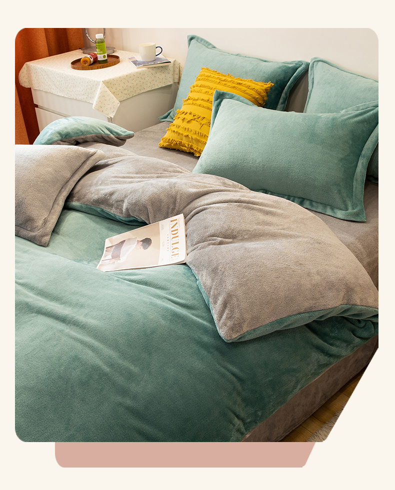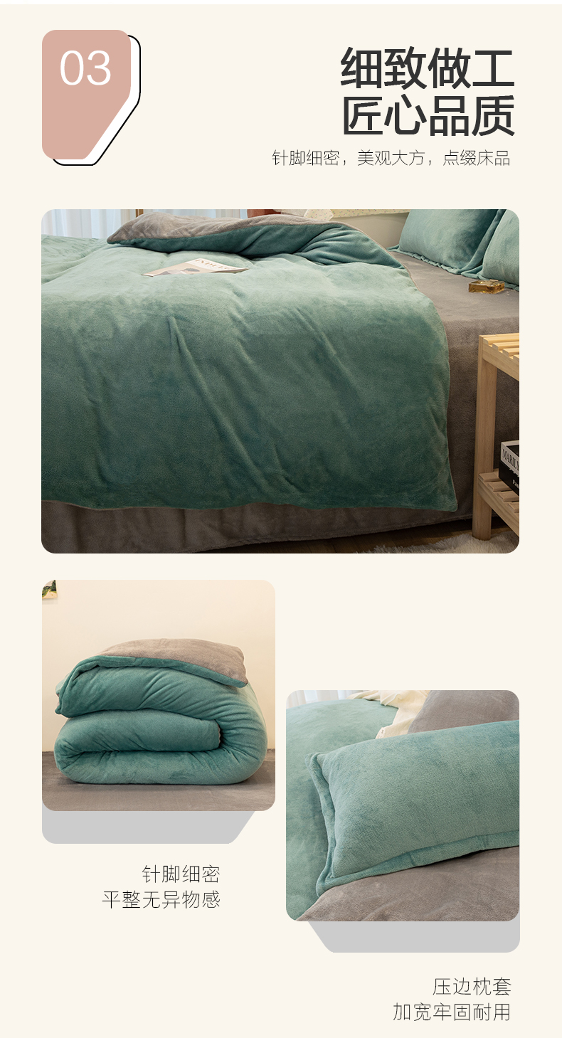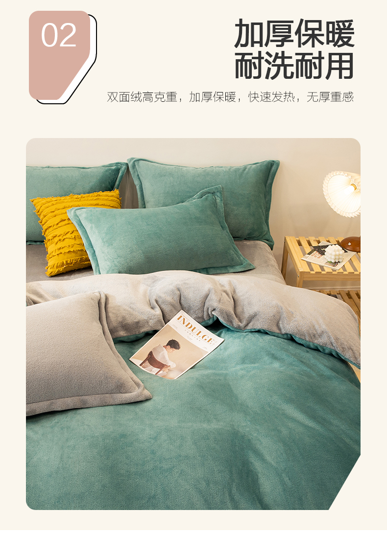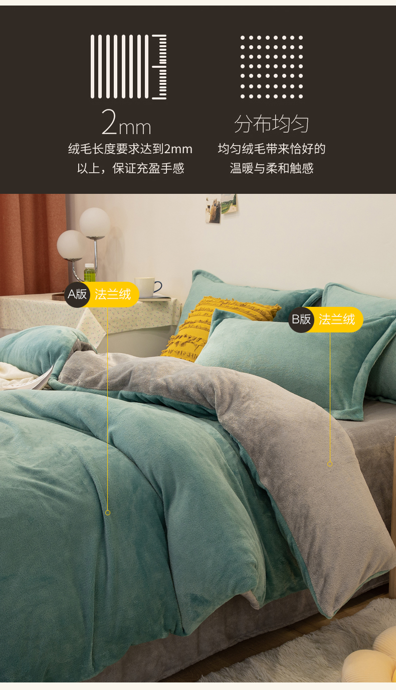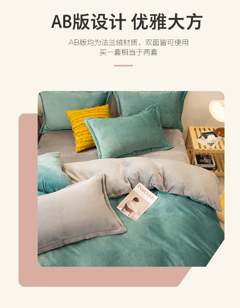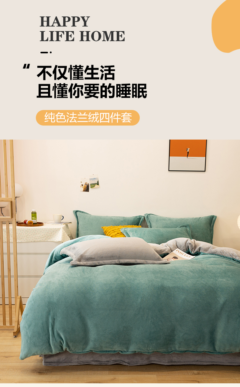 当前位置: 91家纺网 > 商品网购 > 床品套件 > 四件套 > 牛奶绒四件套 > 兰紫橙家纺 2025新款双面绒纯色双拼牛奶绒四件套 竹青+浅灰