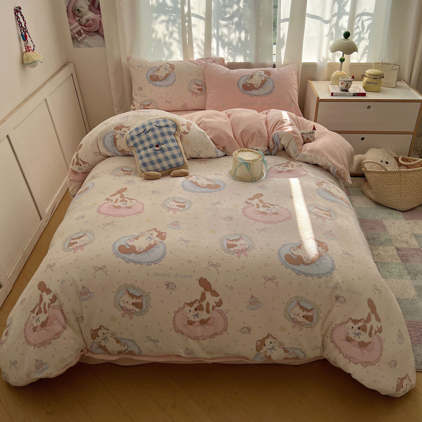 桃喜 2025新款A类200g牛奶绒(含导电丝)印花床单款四件套 元气小猫