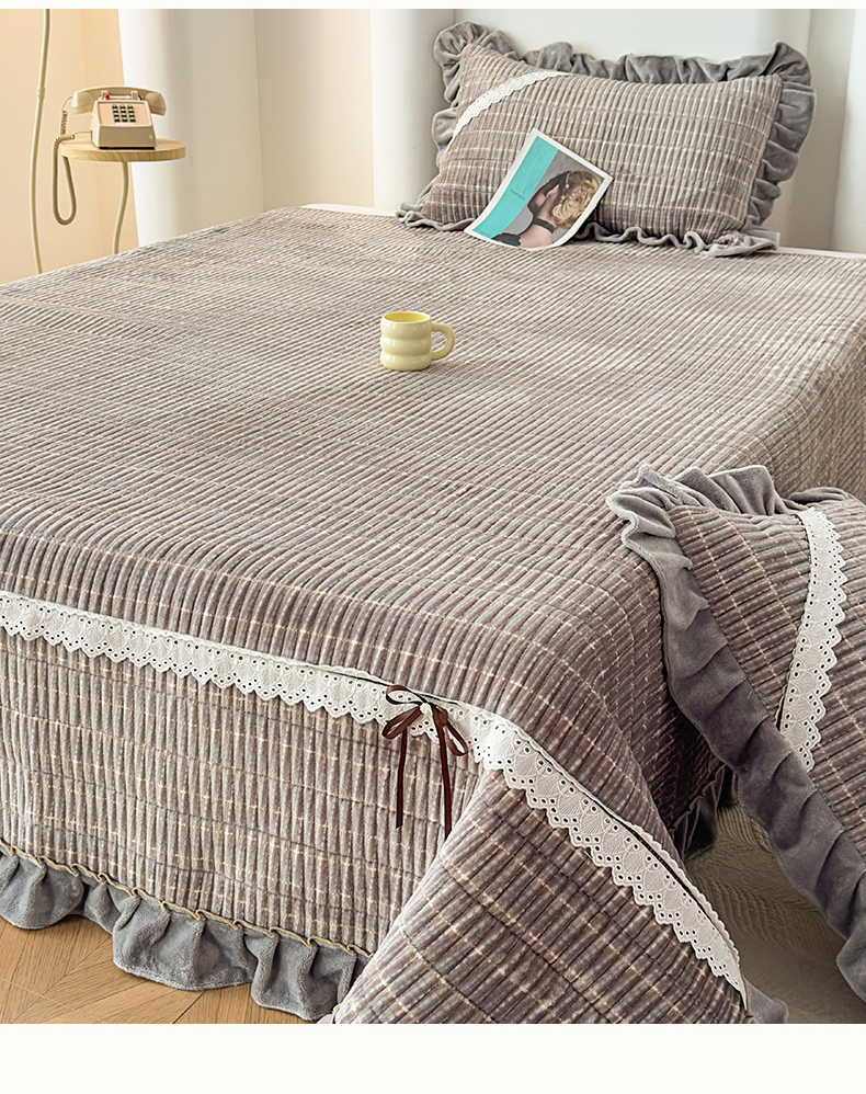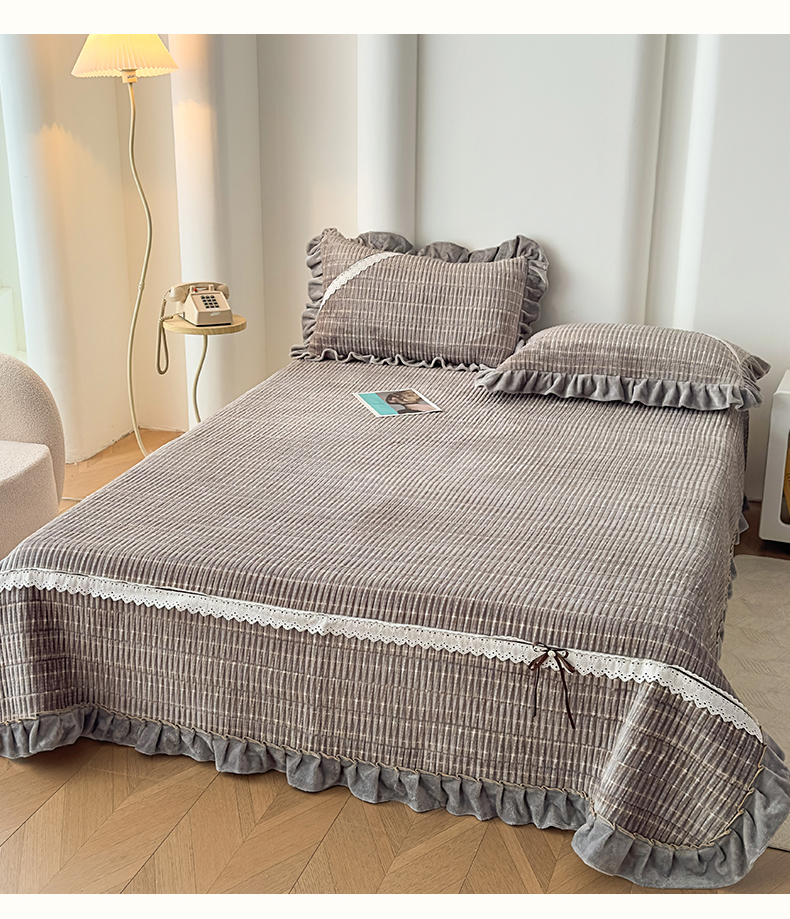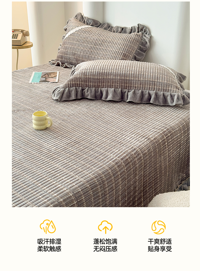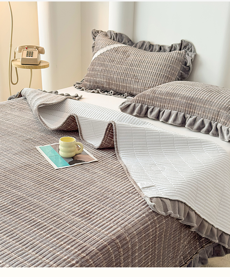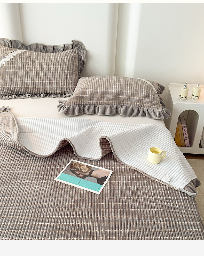 当前位置: 91家纺网 > 商品网购 > 床品套件 > 三件套 > 恒爱家纺 2025新款牛奶绒夹棉花边床盖系列三件套 简约时代-灰