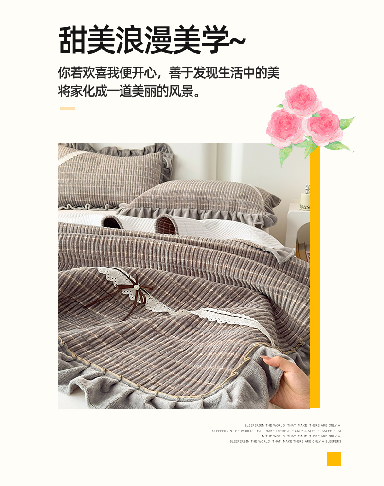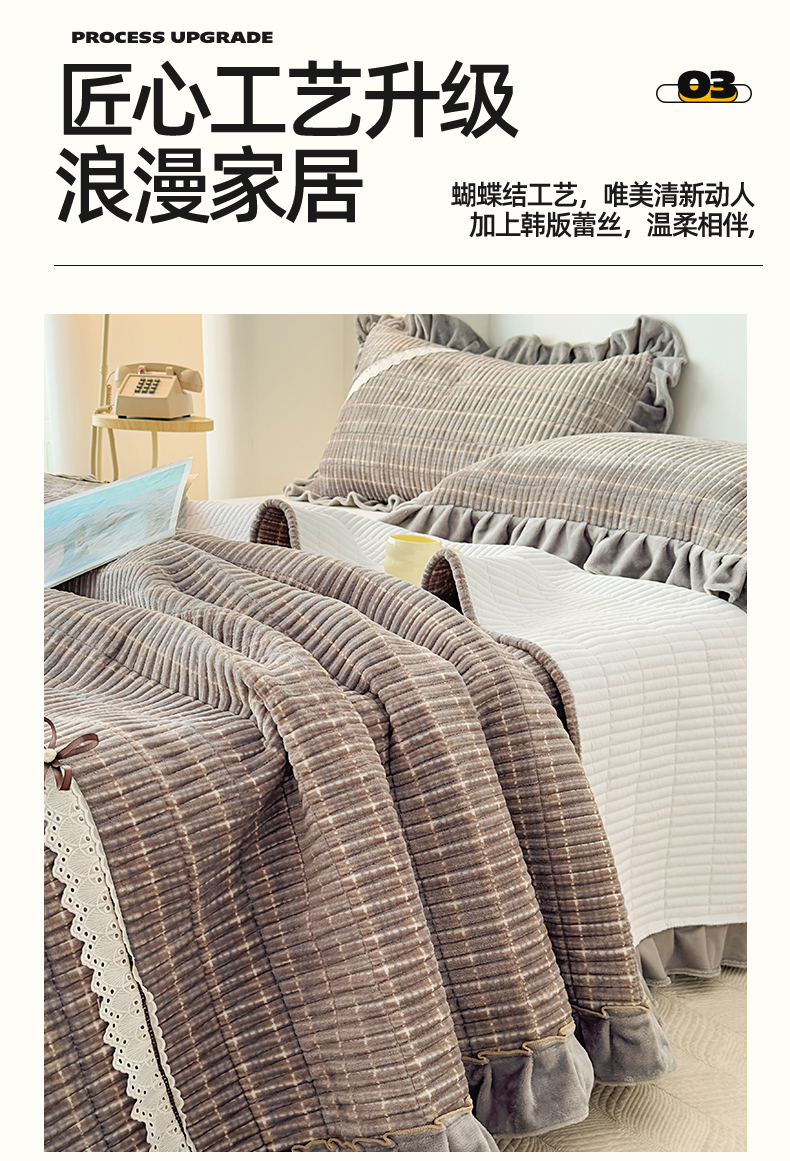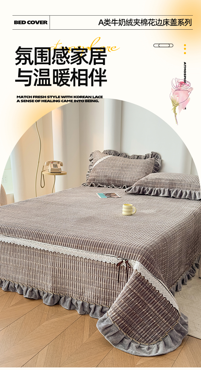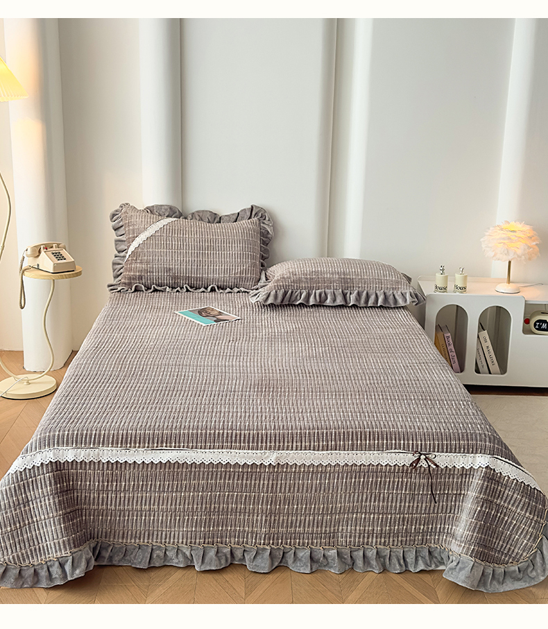 当前位置: 91家纺网 > 商品网购 > 床品套件 > 三件套 > 恒爱家纺 2025新款牛奶绒夹棉花边床盖系列三件套 简约时代-灰