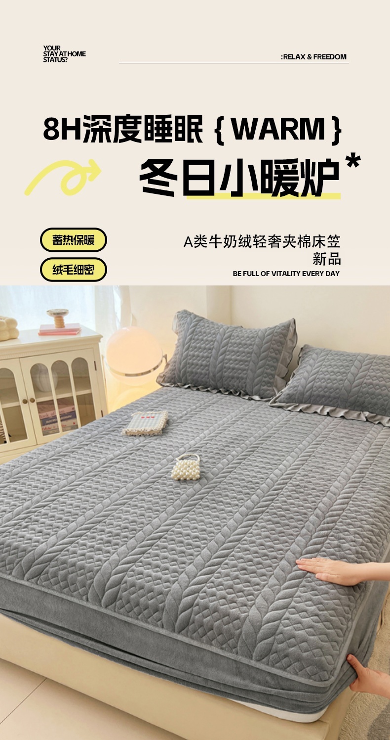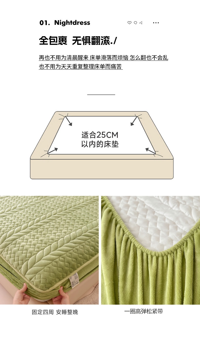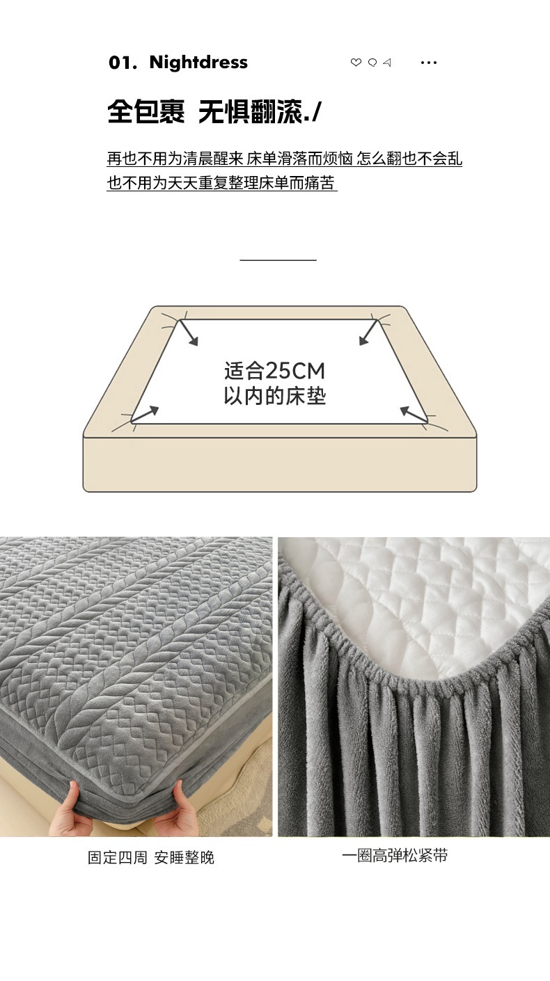90x200cmA类牛奶绒夹棉床笠