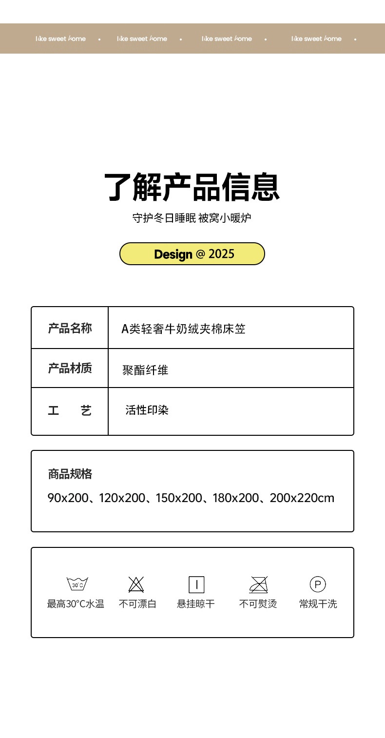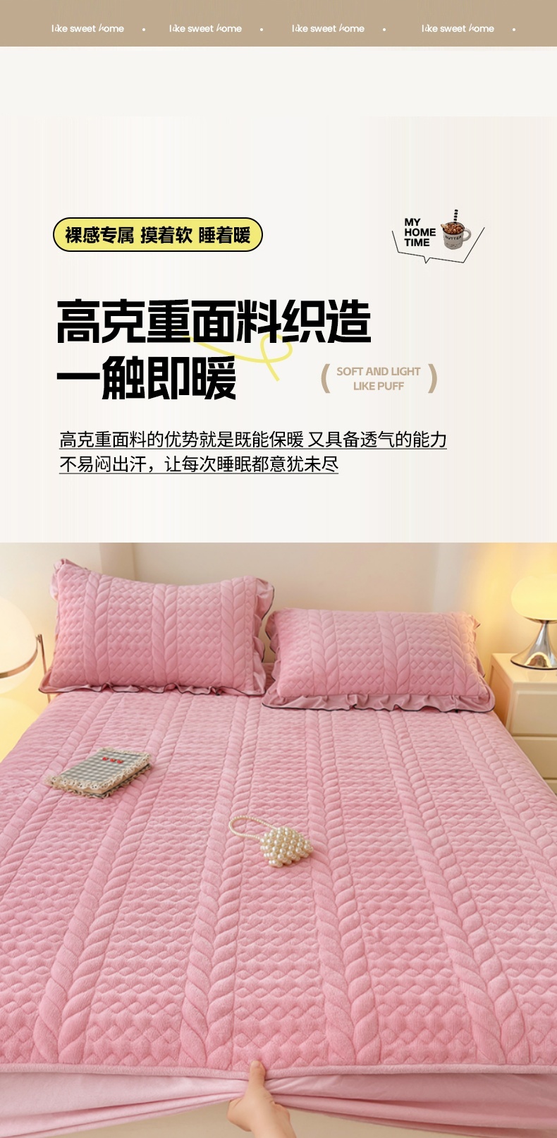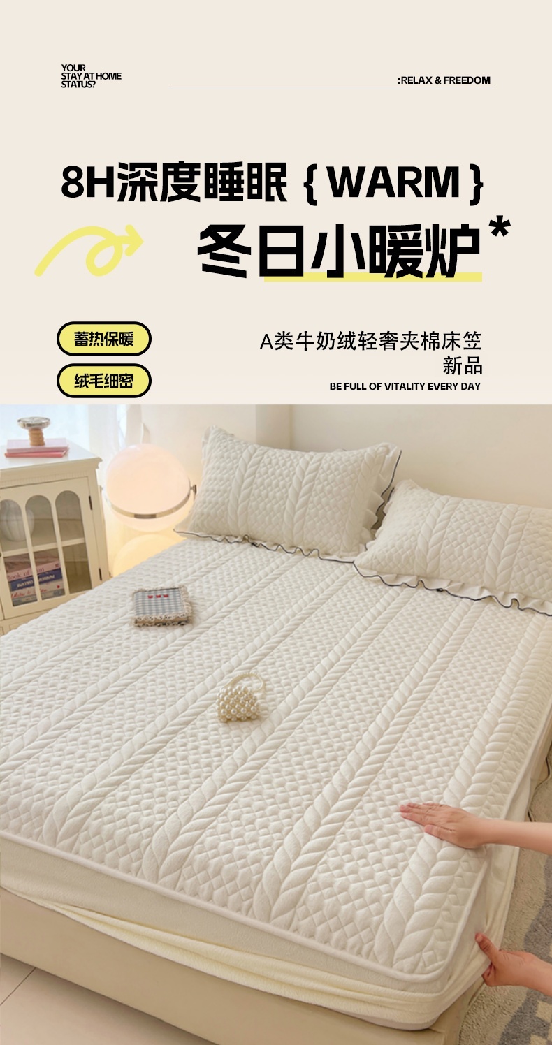 90x200cmA类牛奶绒夹棉床笠