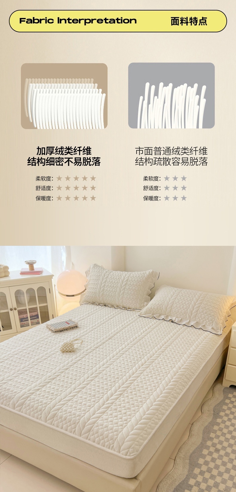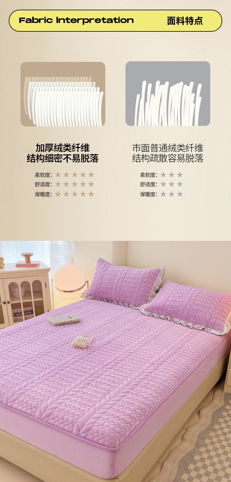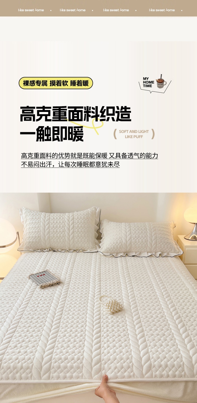 商品名称:(总)圣比熊 2025新款牛奶绒夹棉床笠床单床盖床护垫保护罩三件套花边枕套-轻奢